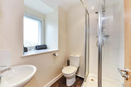En-Suite - Comprising a white suite of wash basin, wc and corner shower.