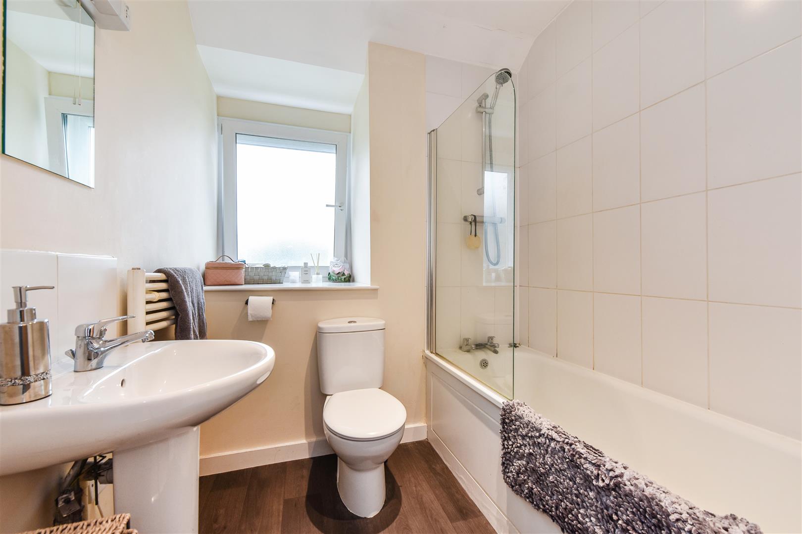 Bathroom - Comprising a white suite of wc, wash basin and bath with shower over.