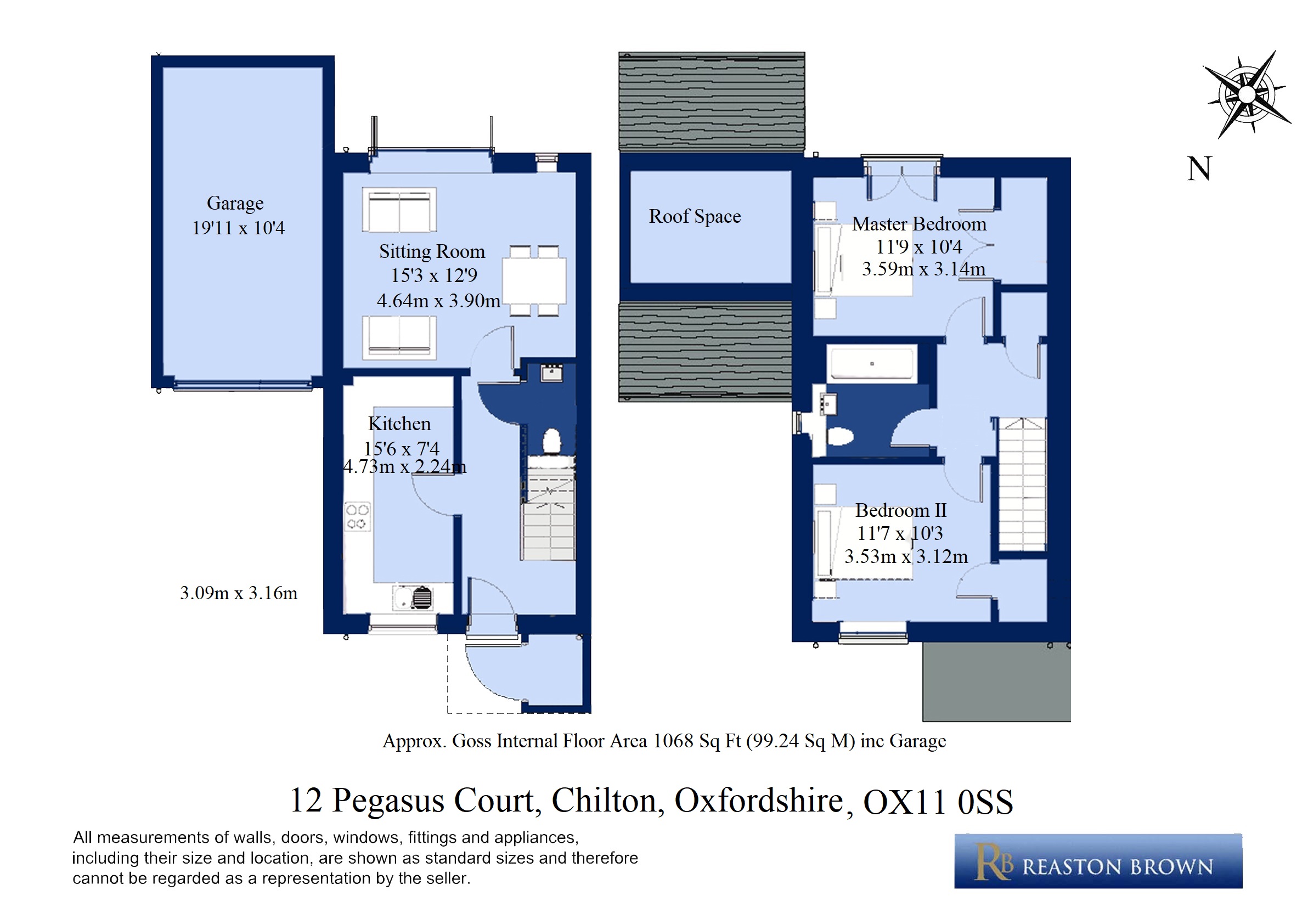 12 Pegasus Court is a desirable, two bed room house set in a small development in the charming village of Chilton. The property is finished to a high standard throughout. Entering through the grey powder coated front door you find yourself in a spacious hallway with doors to the kitchen, cloakroom and lounge/dining room. The kitchen is fitted with dove grey and Cashmere smooth finish units with integrated Electric Oven and Hob along with an integrated fridge/freezer. The lounge is a bright and airy room with patio doors leading out to the back garden. The ground floor has warming under floor heating throughout. Rising to the first floor you find two double bedrooms both with ample storage, the main bedroom has a balcony overlooking the garden. The family bathroom comprises a contemporary white suite with shower over the bath. Upstairs is heated by radiators, all served by an air source heating system. Outside is a garden laid to lawn and a single garage with a driveway.