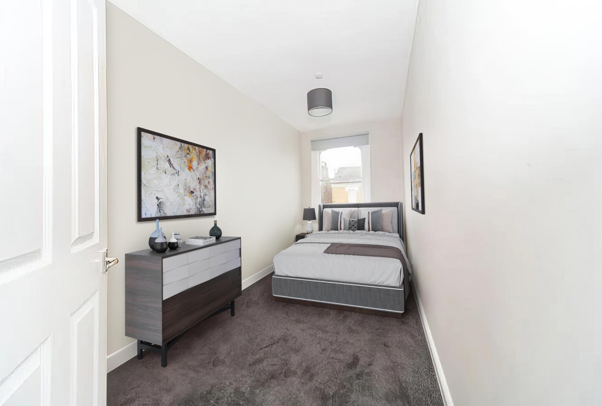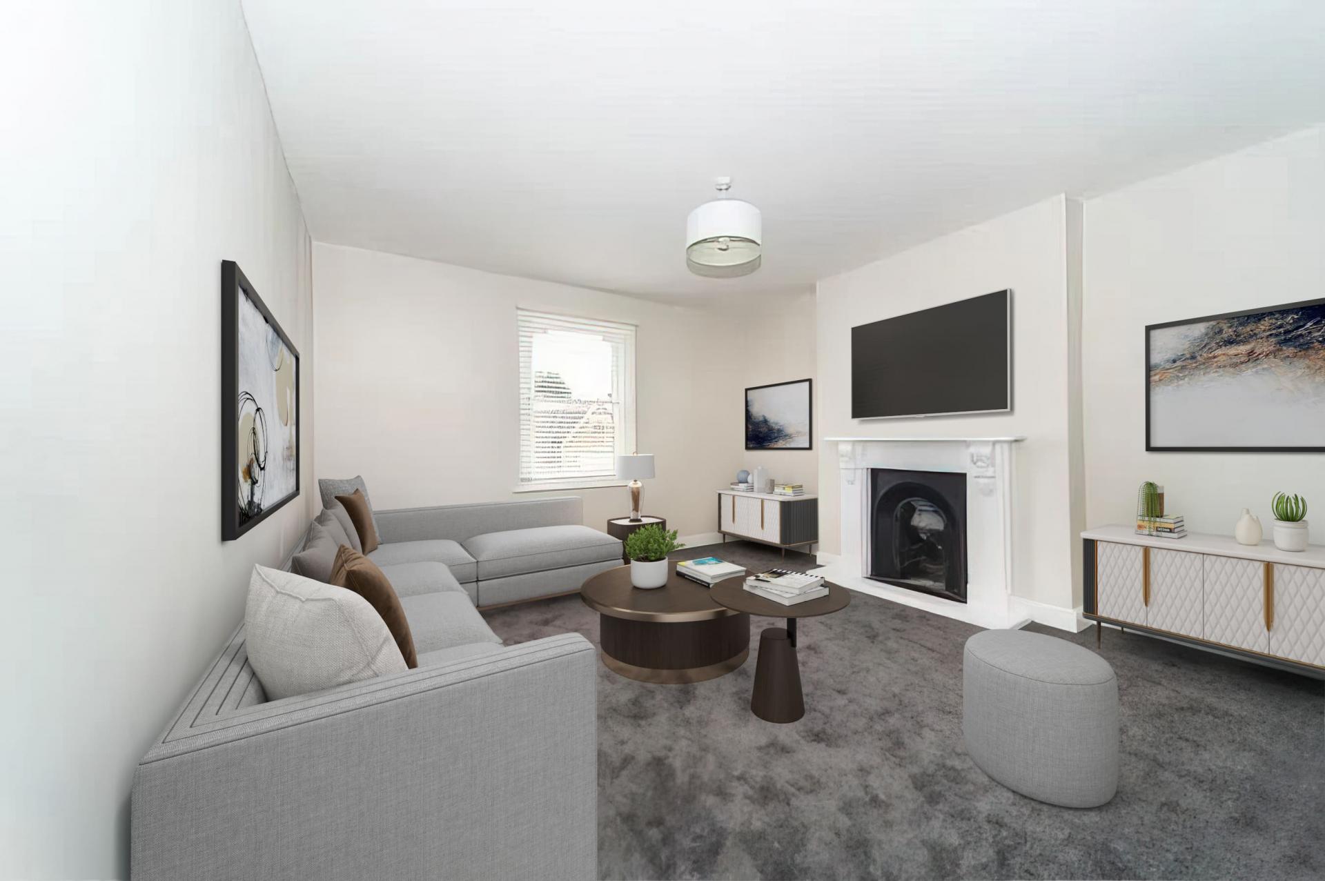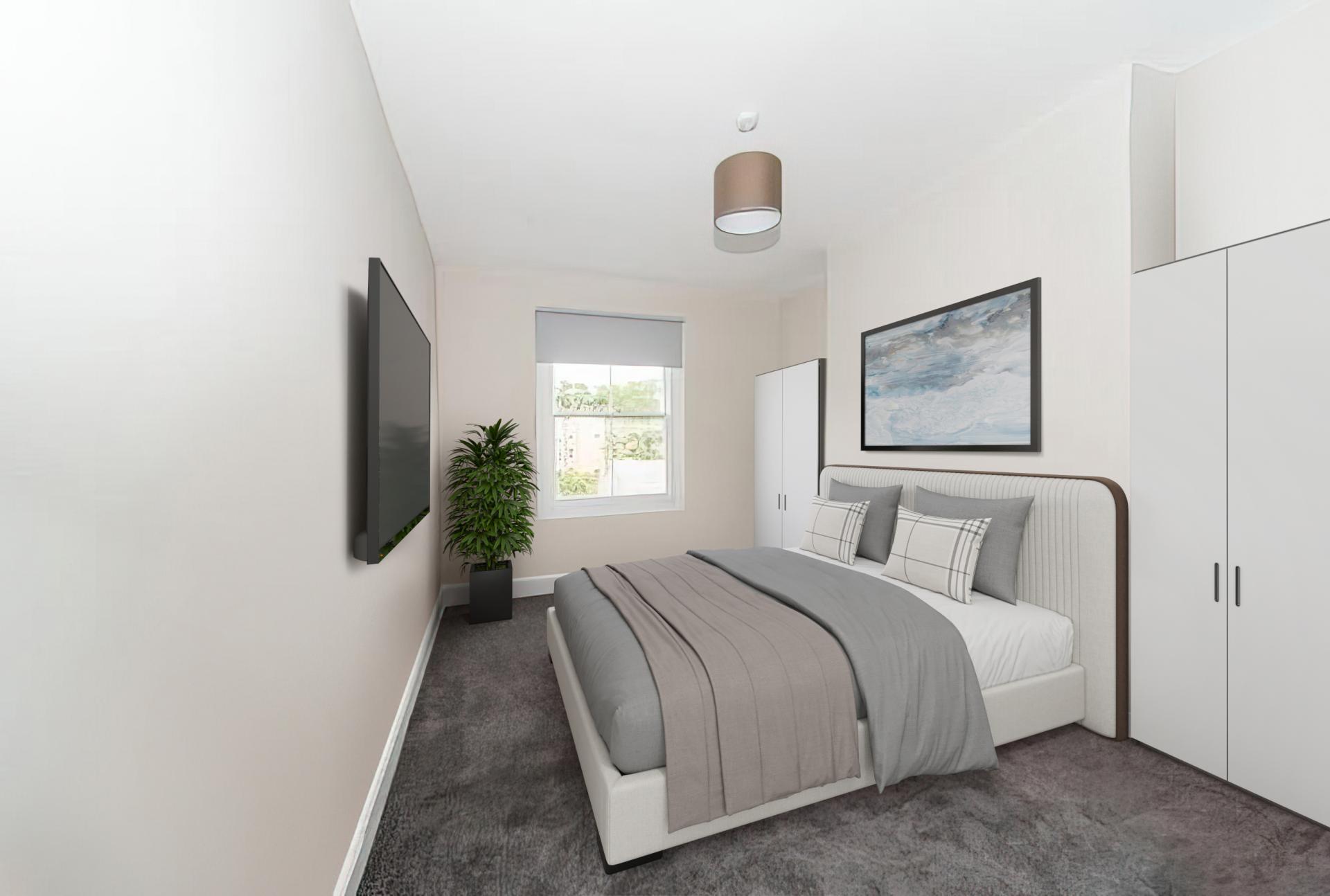 The property consists of two double bedrooms, monochrome kitchen, large living room and modern bathroom.