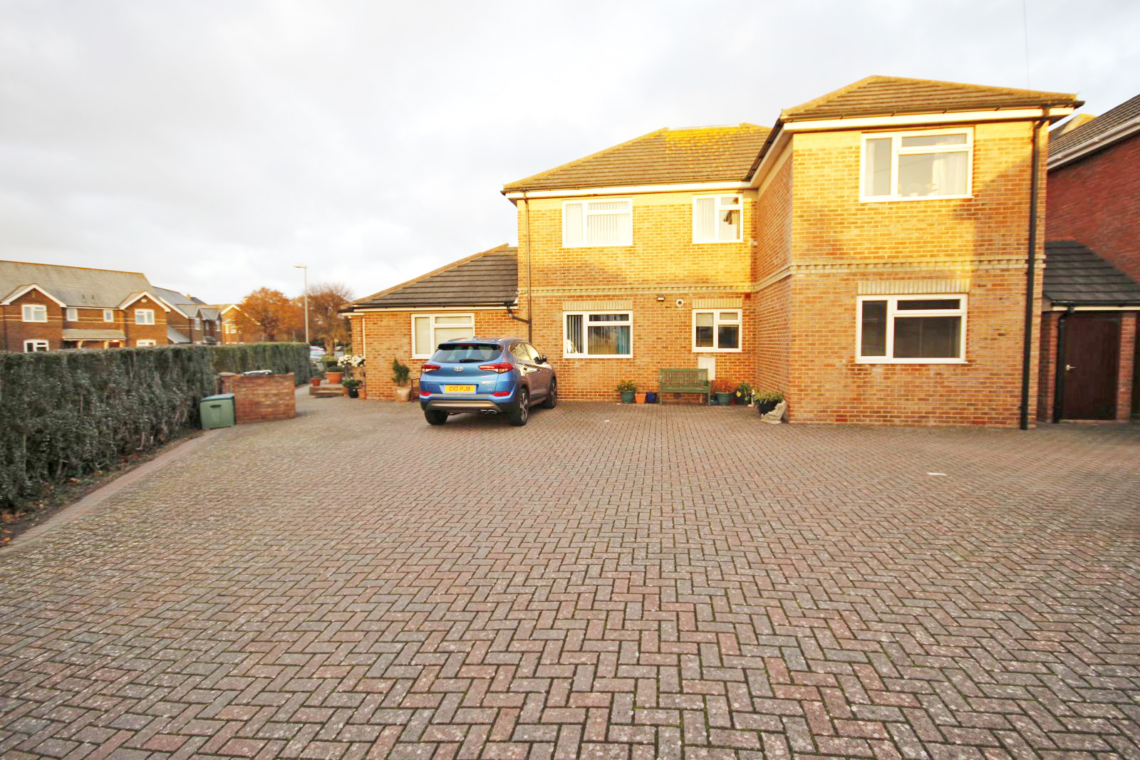 Brick paved with steps to communal front entrance leading around to the allocated parking and visitors parking with wrought iron gate providing access from Avenue Road West