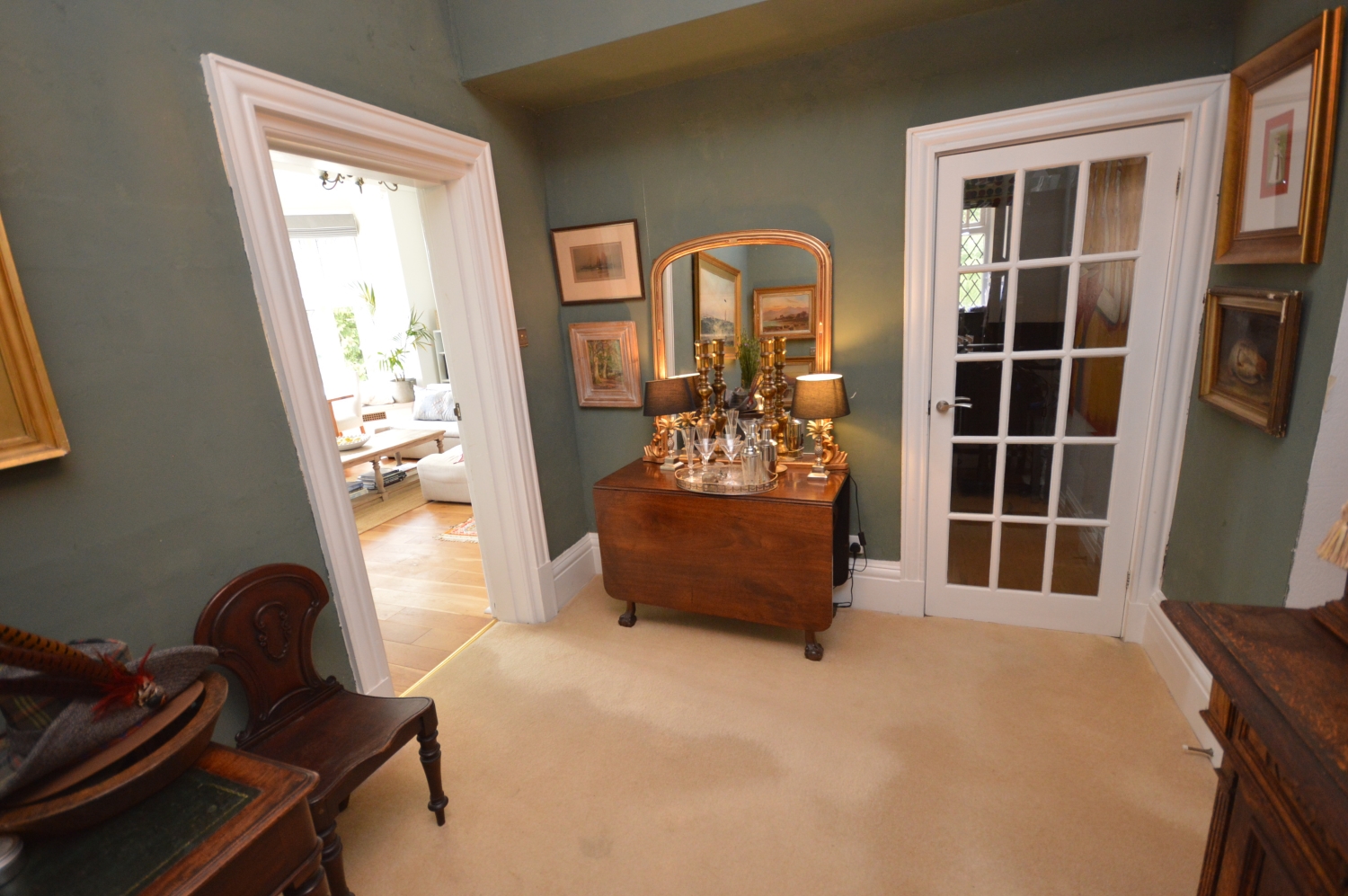 Beautifully presented, bright and airy, first floor apartment in this stunning country house, surrounded by fields and woodlands. This two bedroom apartment benefits from far reaching views, modern infra red heating, communal maintained grounds, driveway parking and communal summer house. Available now on a furnished or unfurnished basis.