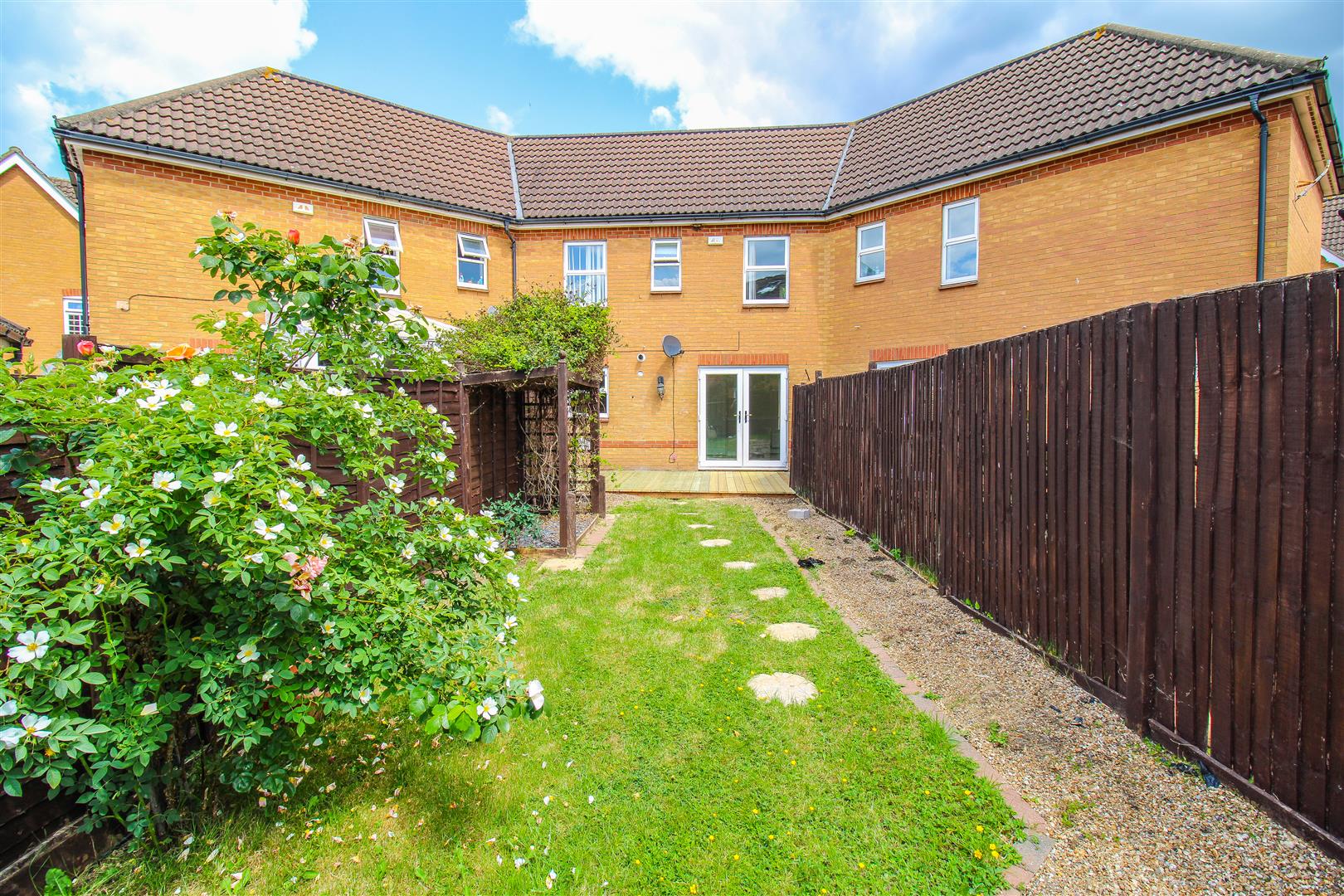 A large two bedroom home with GARAGE, available NOW on an unfurnished basis. The property has been recently decorated throughout and offers spacious accommodation with the ground floor consisting of an entrance hall, cloakroom/W.C, kitchen which has a range of wall and base units and a lounge with French doors opening on to the garden. The first floor has a family bathroom and two double bedrooms. Outside, the property has front and rear gardens as well as a single garage en-bloc with driveway.