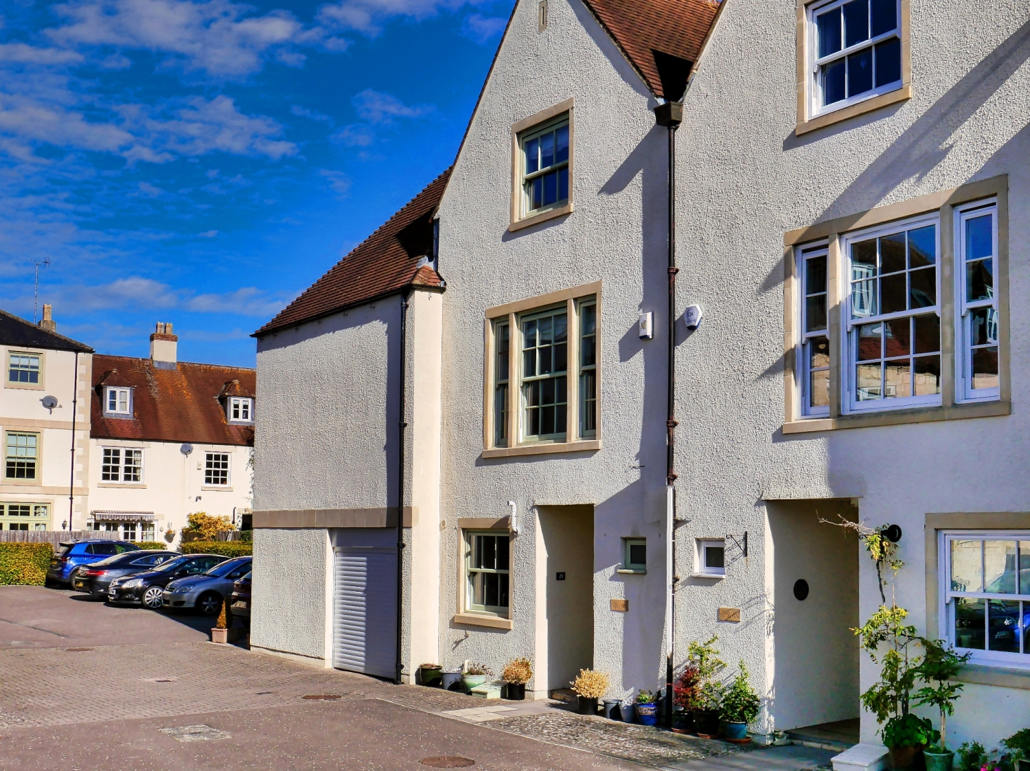 Upstairs, the first floor offers a generous sitting room and a principal bedroom with an ensuite shower room. The second floor provides two further double bedrooms and a family bathroom. Gas-fired central heating and full double glazing ensure comfort all year round.