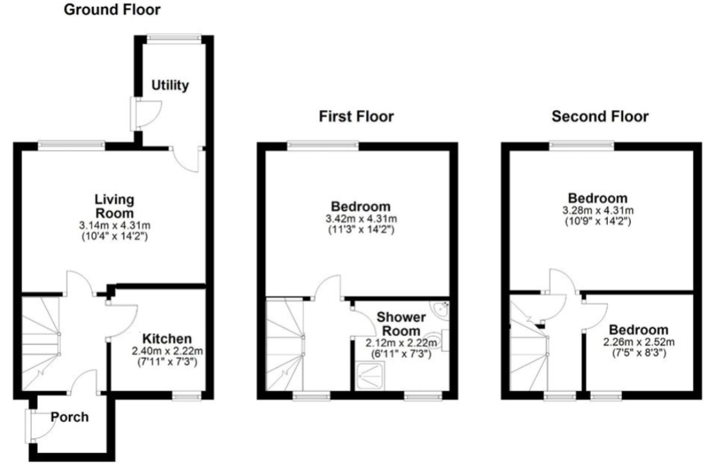 Upstairs, the first floor hosts a generous master double bedroom and a stylish new bathroom with shower. The top floor includes a second double bedroom and a smaller third bedroom or study – ideal for home working. Outside, the property benefits from a secluded rear courtyard. This characterful home offers modern comforts in a desirable central location.