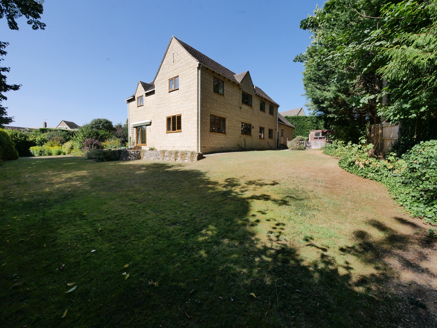 Outside the gardens are a particularly feature of this family home. A gravel driveway provides parking and leads to the double garage. The wrap around gardens are predominately laid to lawn with various flower/shrub borders and a patio area offering a place to sit and relax.
