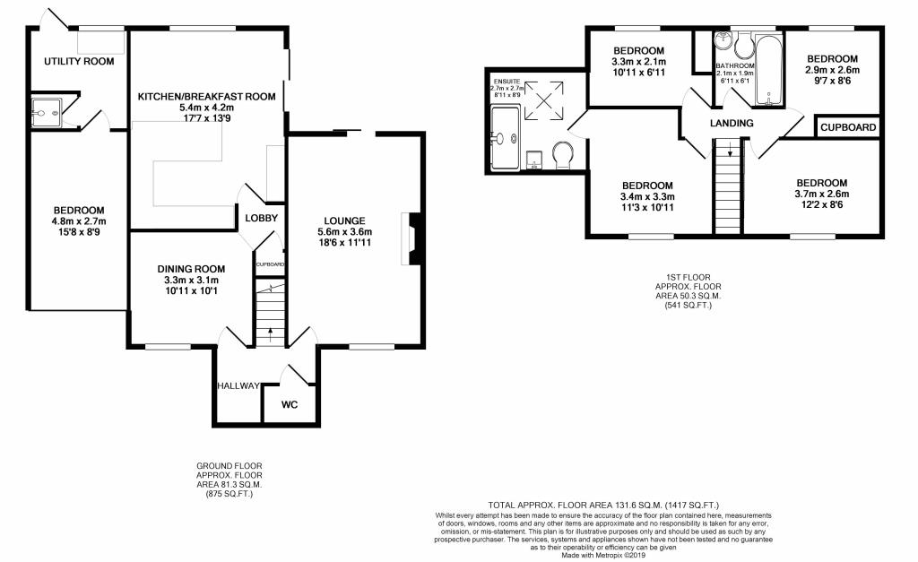 Upstairs, the property offers four bedrooms, including a well-appointed principal bedroom with built-in storage and an en-suite shower room. There are two further double bedrooms, both with fitted wardrobes, a single bedroom, and a family bathroom with a bath and shower over.