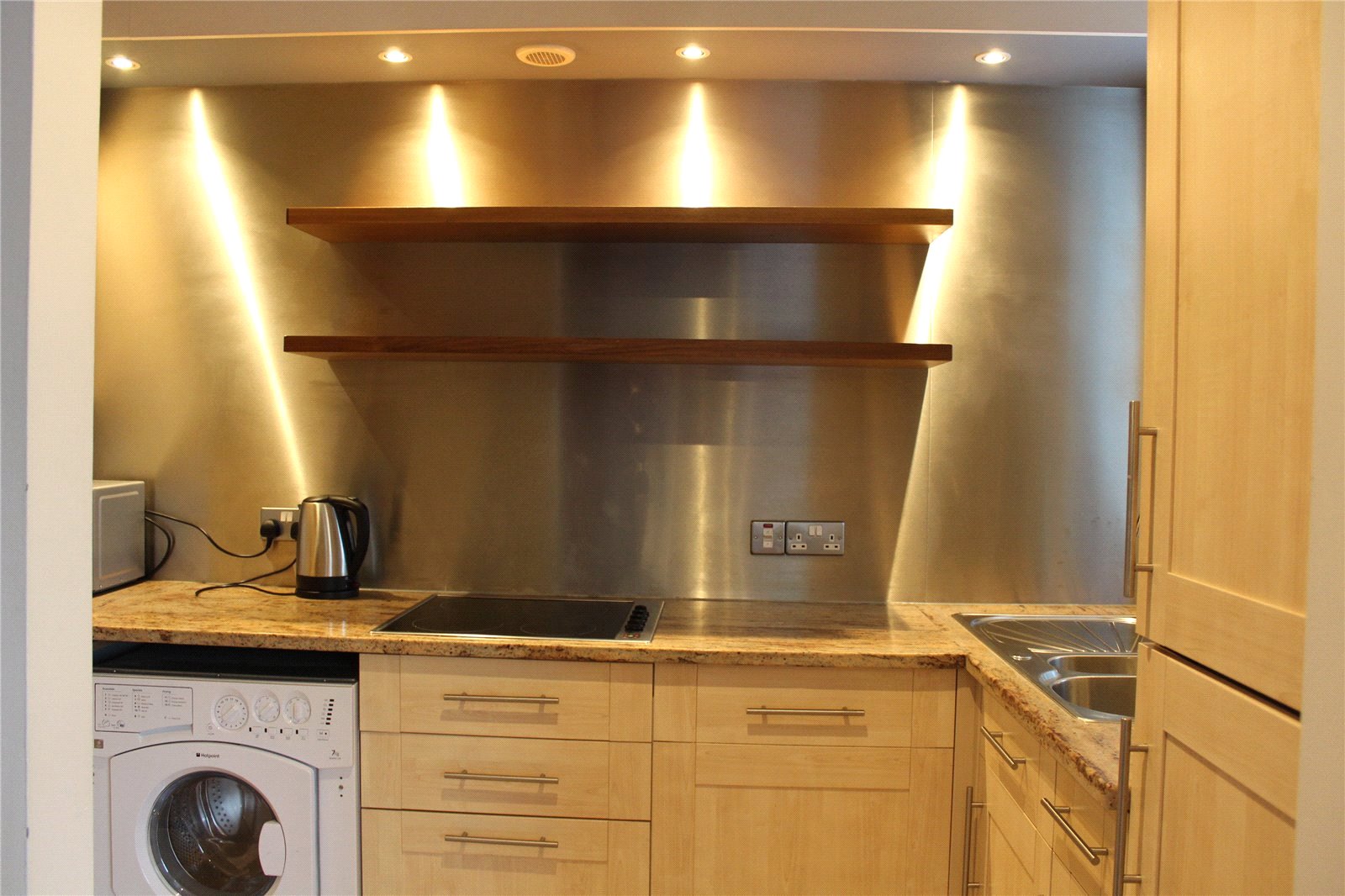 The property features a bright and spacious living room, a modern fitted kitchen, a double bedroom, and a fully tiled bathroom with overhead shower. Additional benefits include wooden flooring throughout, a residents’ gymnasium, and a concierge service.