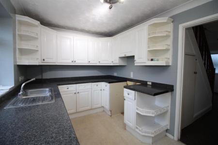 Double glazed window to rear and double glazed door to rear garden. Fitted comprising of single drainer sink unit with mixer taps set in roll edge work surfaces, range of matching base and eye level units, space for domestic appliances, serving hatch through to lounge.