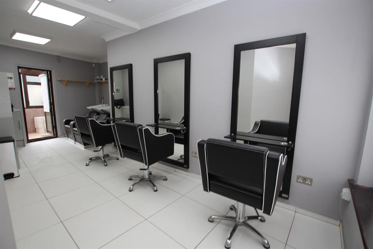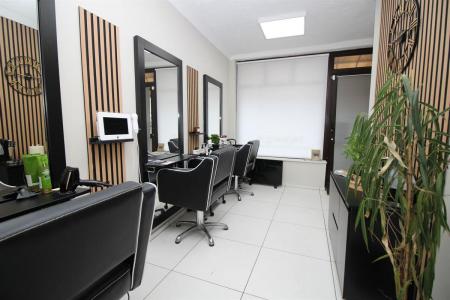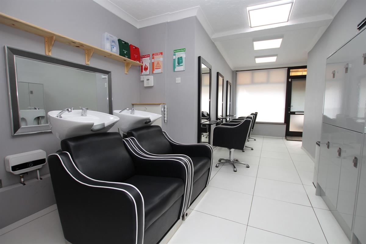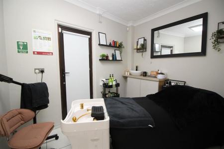 Double glazed window to front. This area is ready to trade with all furniture required to open a women's hair salon including chairs, fitted mirrors and hair wash basins. Double glazed door to