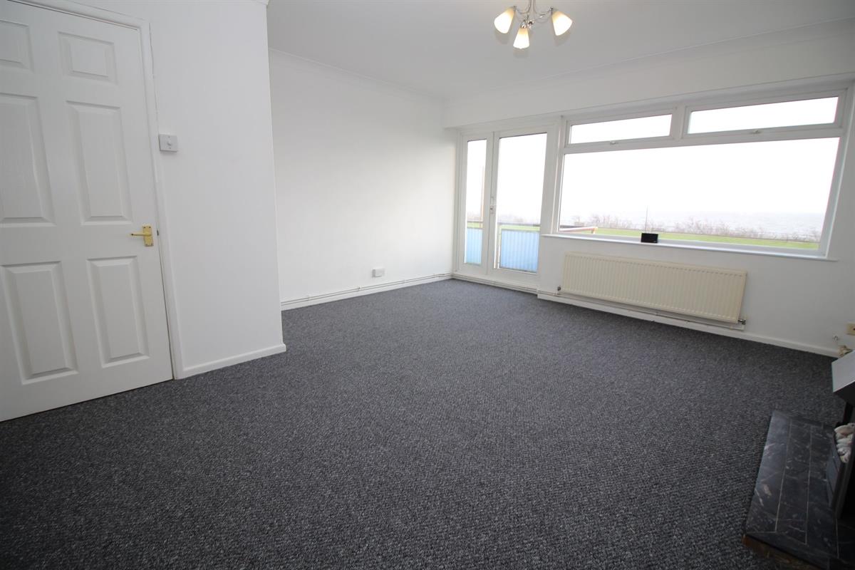 Feature fire place, radiator, coved and skimmed ceiling, double glazed window to front with sea view, double glazed door to balcony, open access to