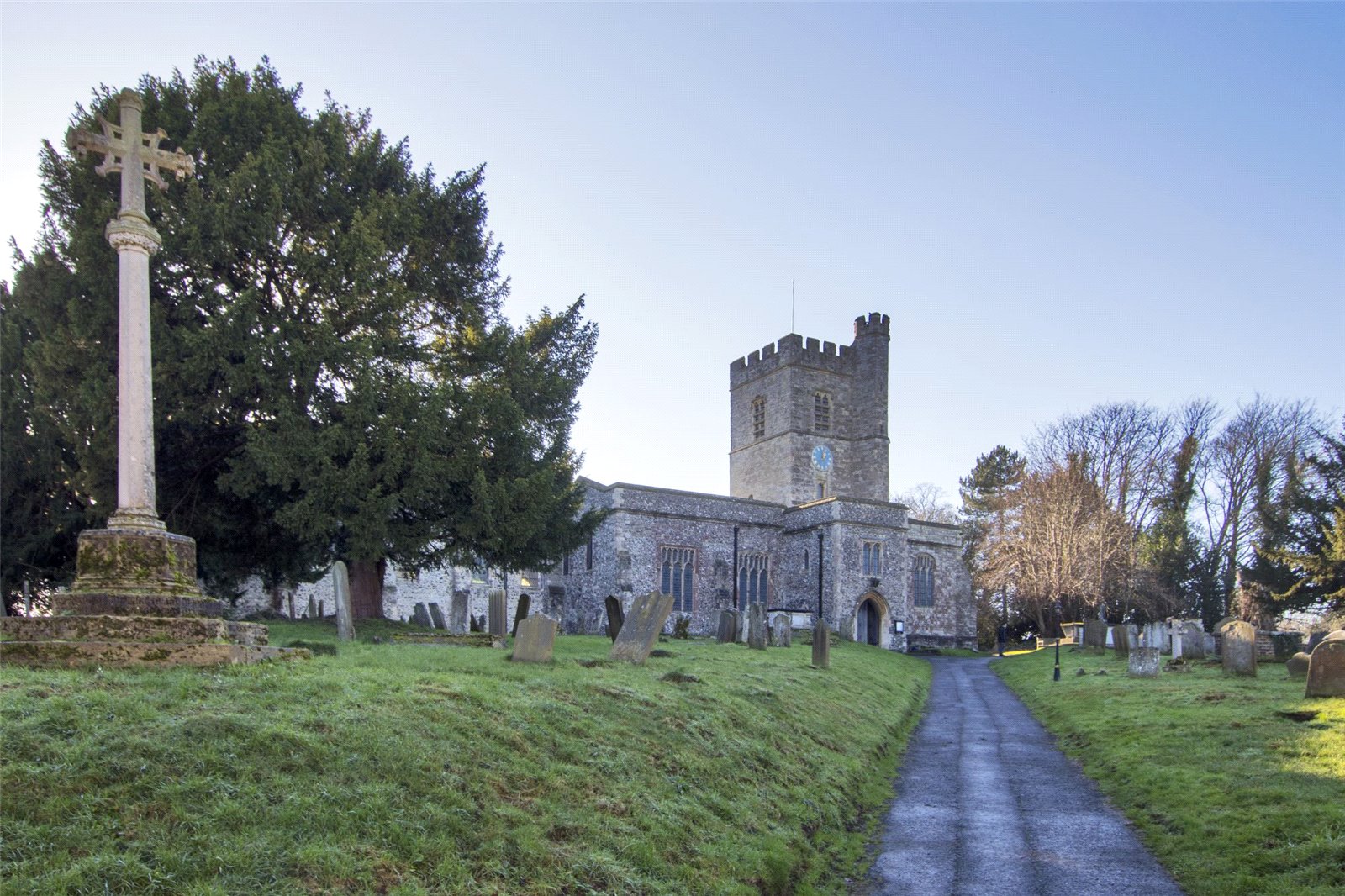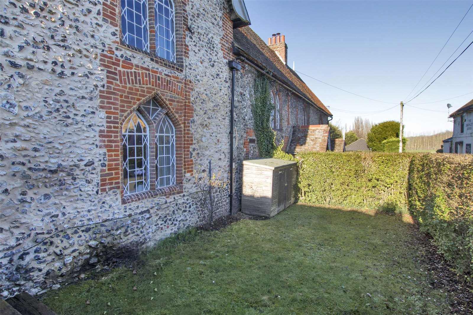 Set in this historic Dickensian village reported to be one of the oldest buildings within the village dating back to 14th Century. This Grade II listed flint cottage offers spacious lounge/dining room, the rear lobby leads to utility room/courtyard and kitchen, the ground floor shower room/wc completes the ground floor accommodation. To the first floor there is double bedroom with feature gothic windows to front with staircase leading from first floor to master bedroom with both en-suite dressing room and bathroom/wc. There are pretty country gardens to front laid to lawn with screening privet hedges with the added advantage of residents parking in the lane for one medium sized car. Your early inspection is strongly recommended to secure this rarely available purchase.