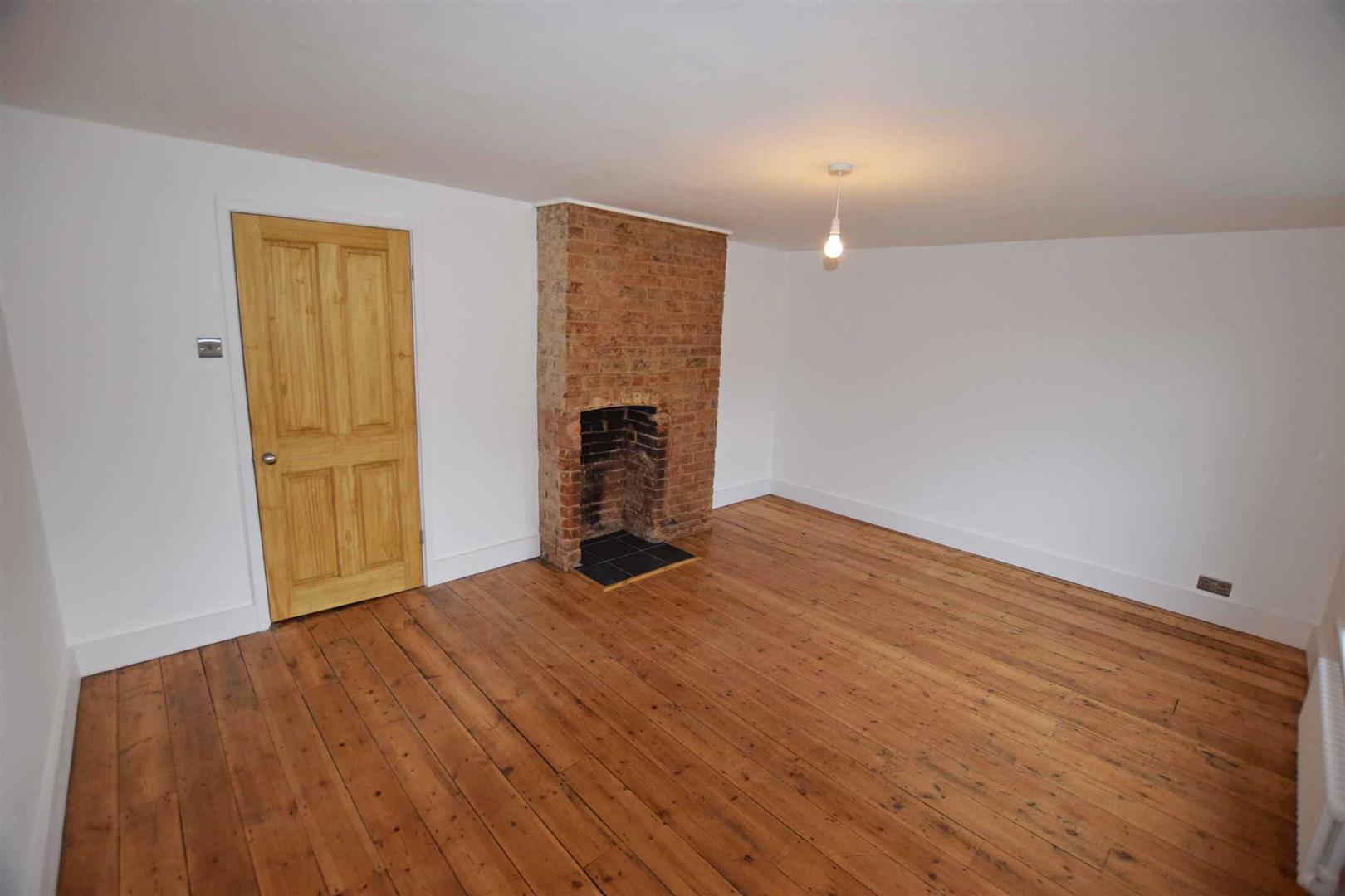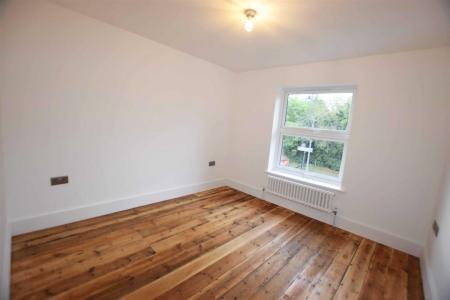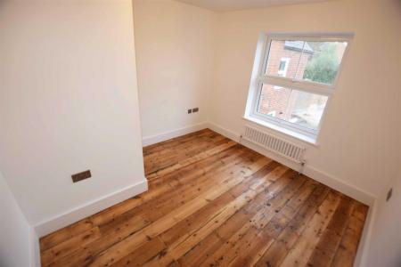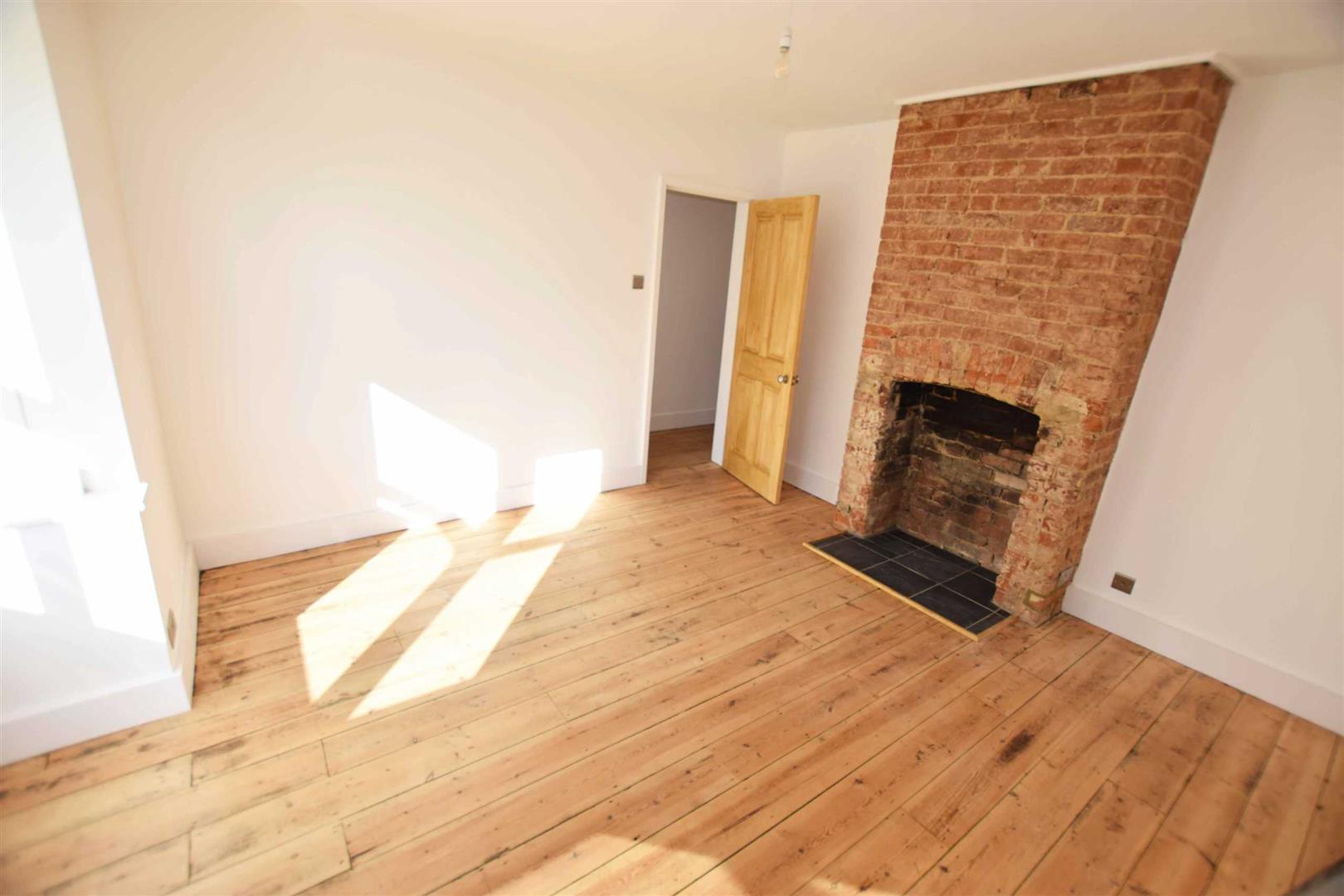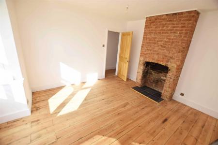 Bedroom Two - 15'6'' x 11'9'' - Double glazed window to front aspect, exposed wooden floorboards, feature red brick fireplace with slate hearth, high skirting boards.