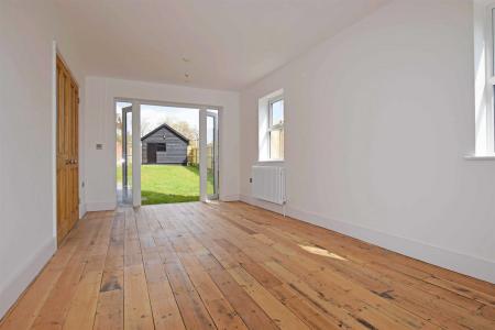 Sitting Room - 20'9'' x 9'8'' - Triple aspect with two double glazed windows to front and side aspects, double glazed French doors to rear with double glazed windows either sides, exposed wooden floor boards, two traditional column style radiators, high skirting.