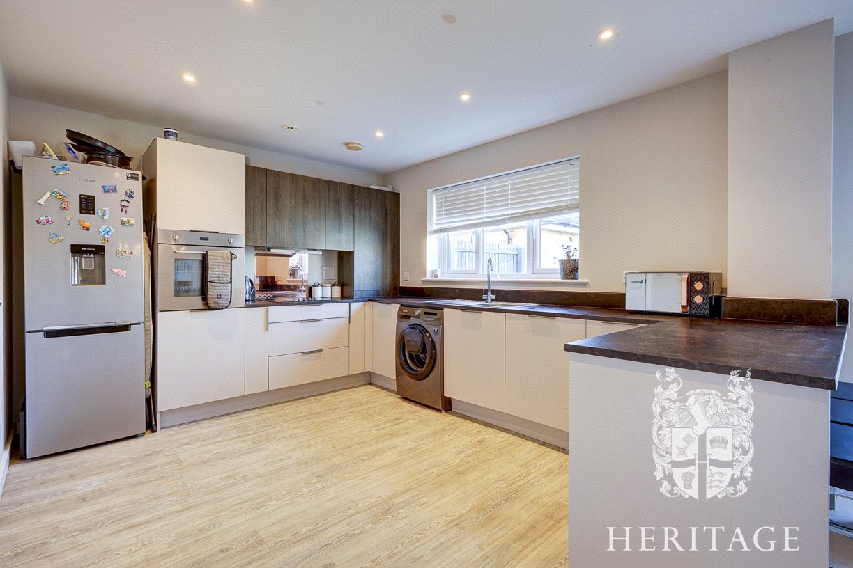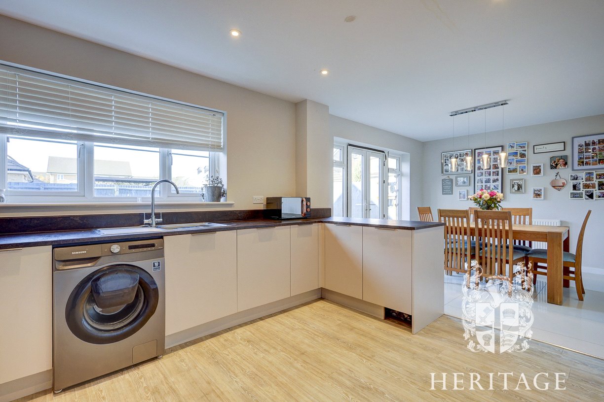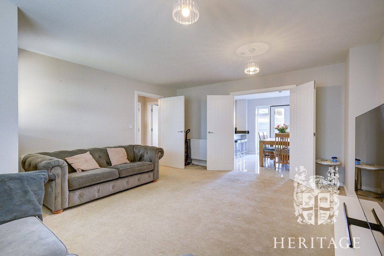 The sitting room is a generous space with a window to the front and double doors opening into the spacious, open-plan kitchen/dining room. This bright room overlooks the rear garden and provides direct access to the patio and lawn.