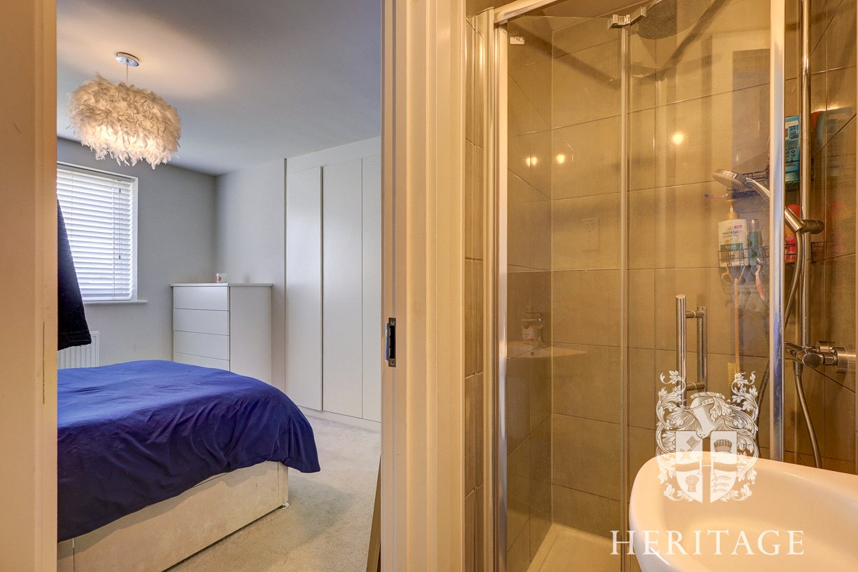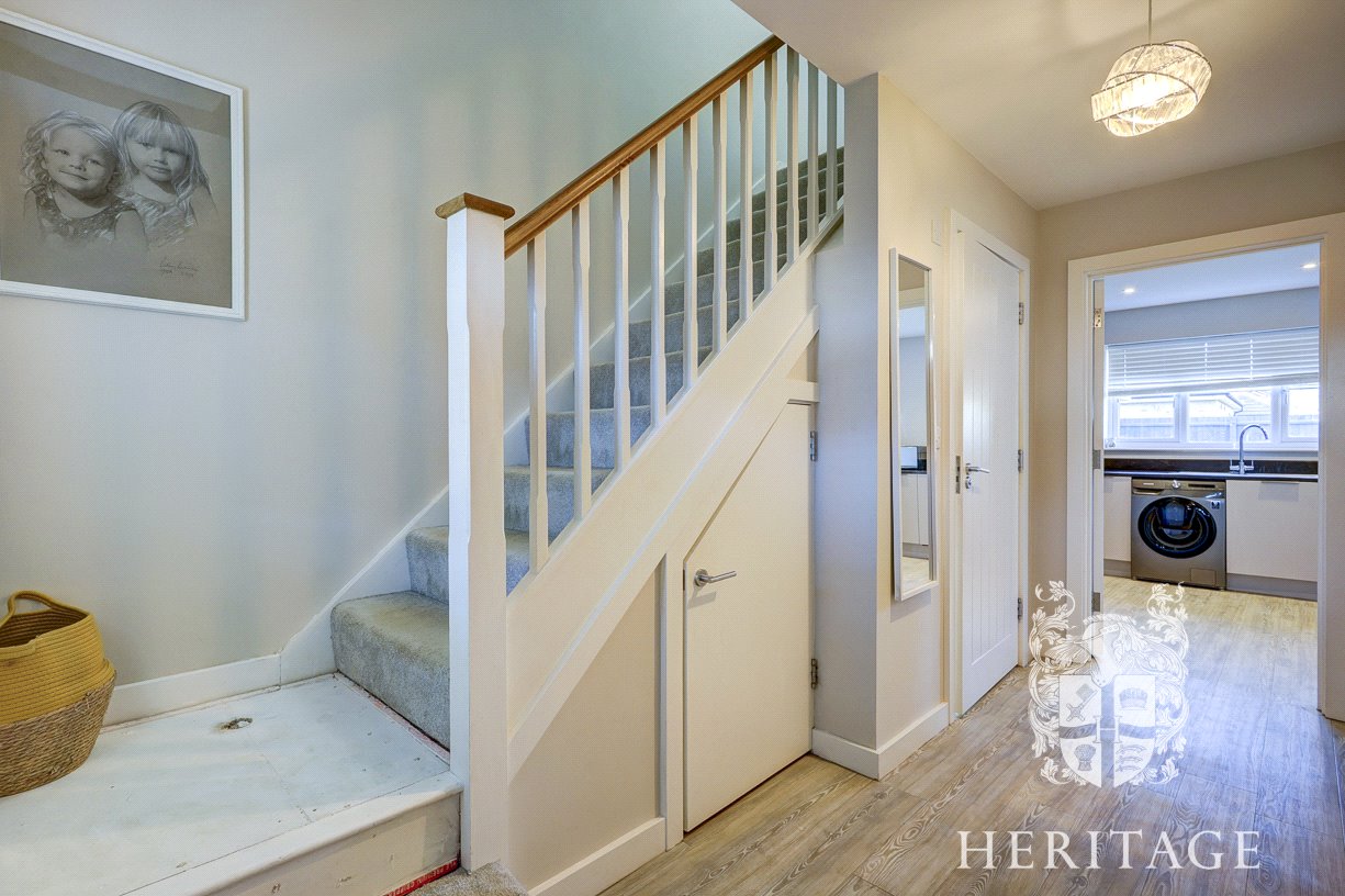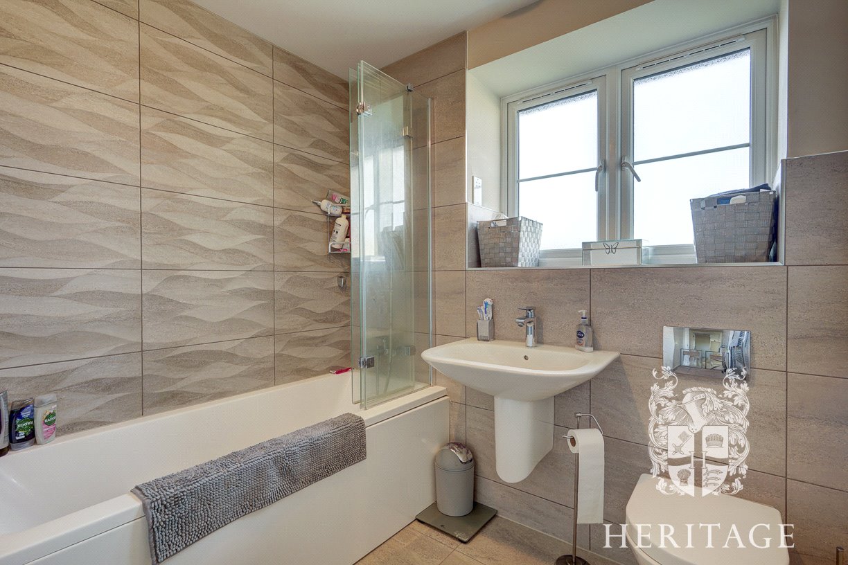 Upstairs, there are four bedrooms, including a main bedroom with en-suite shower room, along with a modern family bathroom.