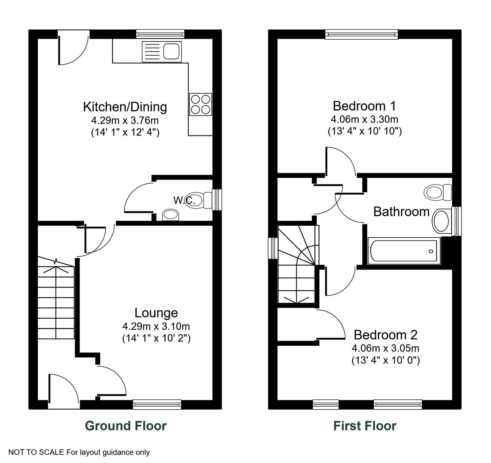 To the first floor, two generously sized double bedrooms with double glazed windows and fitted blinds provide comfortable accommodation, with bedroom one benefiting from built in storage. Both rooms are served by a modern house bathroom.