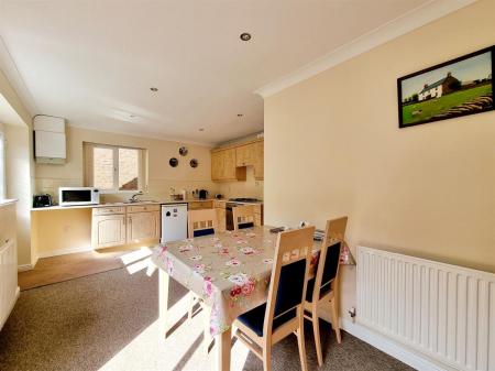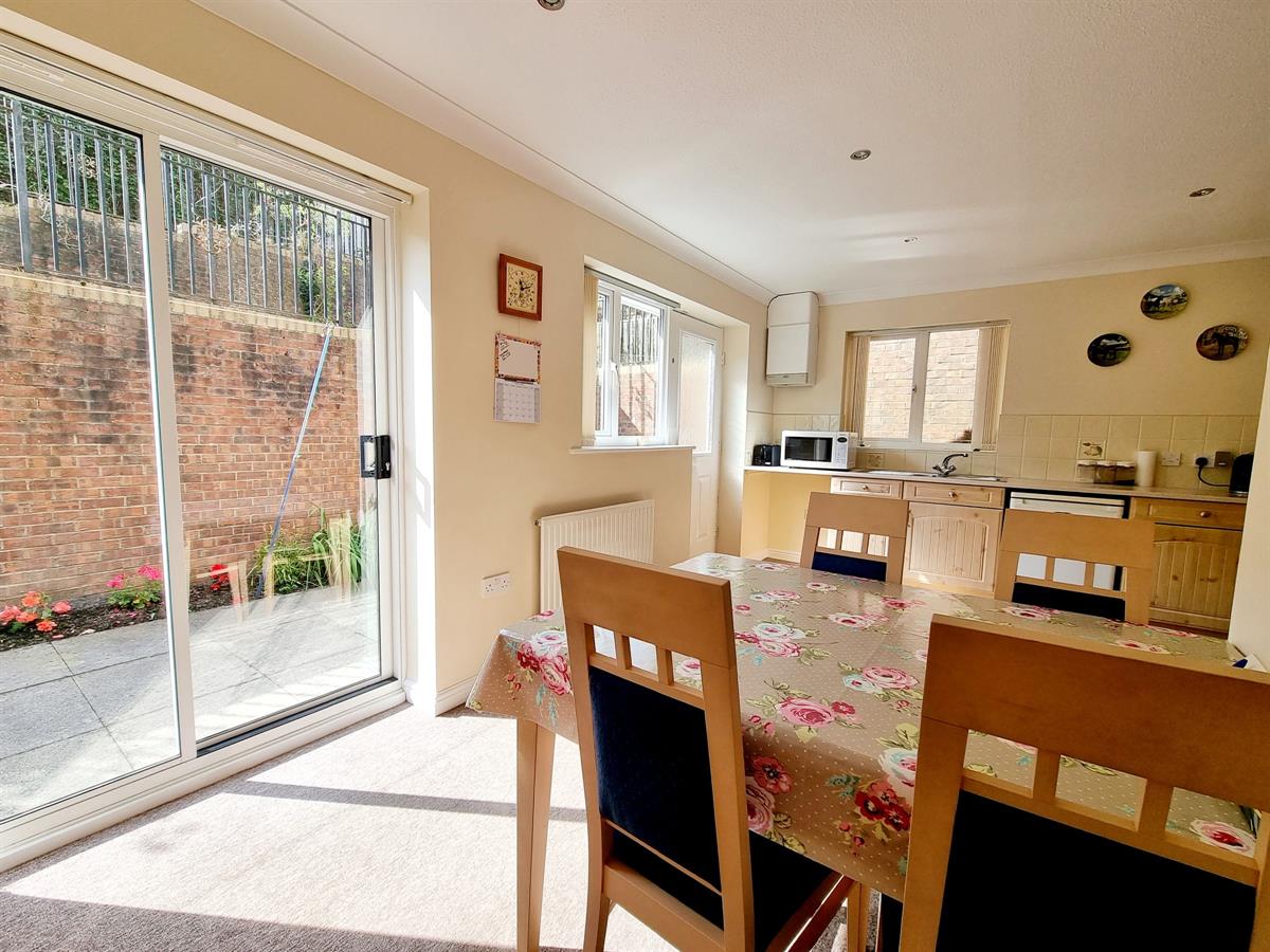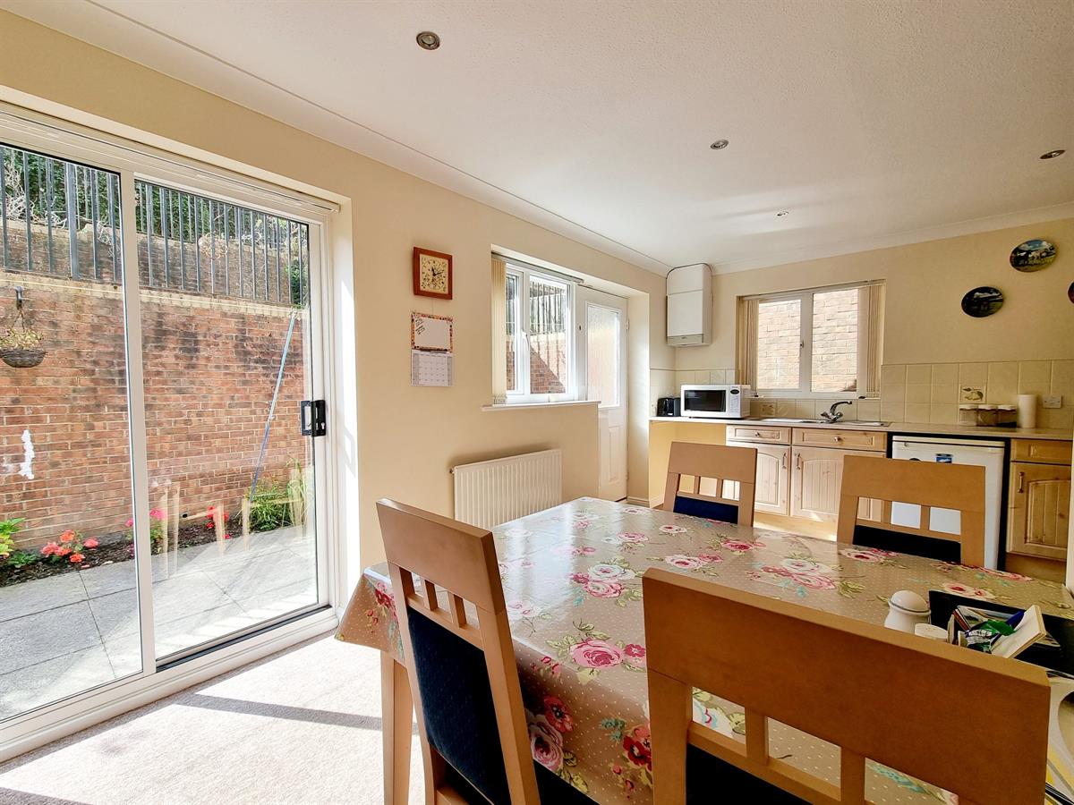 The property opens into an entrance hall leading through to a bright and welcoming lounge with a bay window, creating a comfortable space for relaxation. To the rear sits the kitchen diner, designed with space for seating and featuring a patio door that connects directly to the garden, perfect for enjoying the outdoors during warmer months.