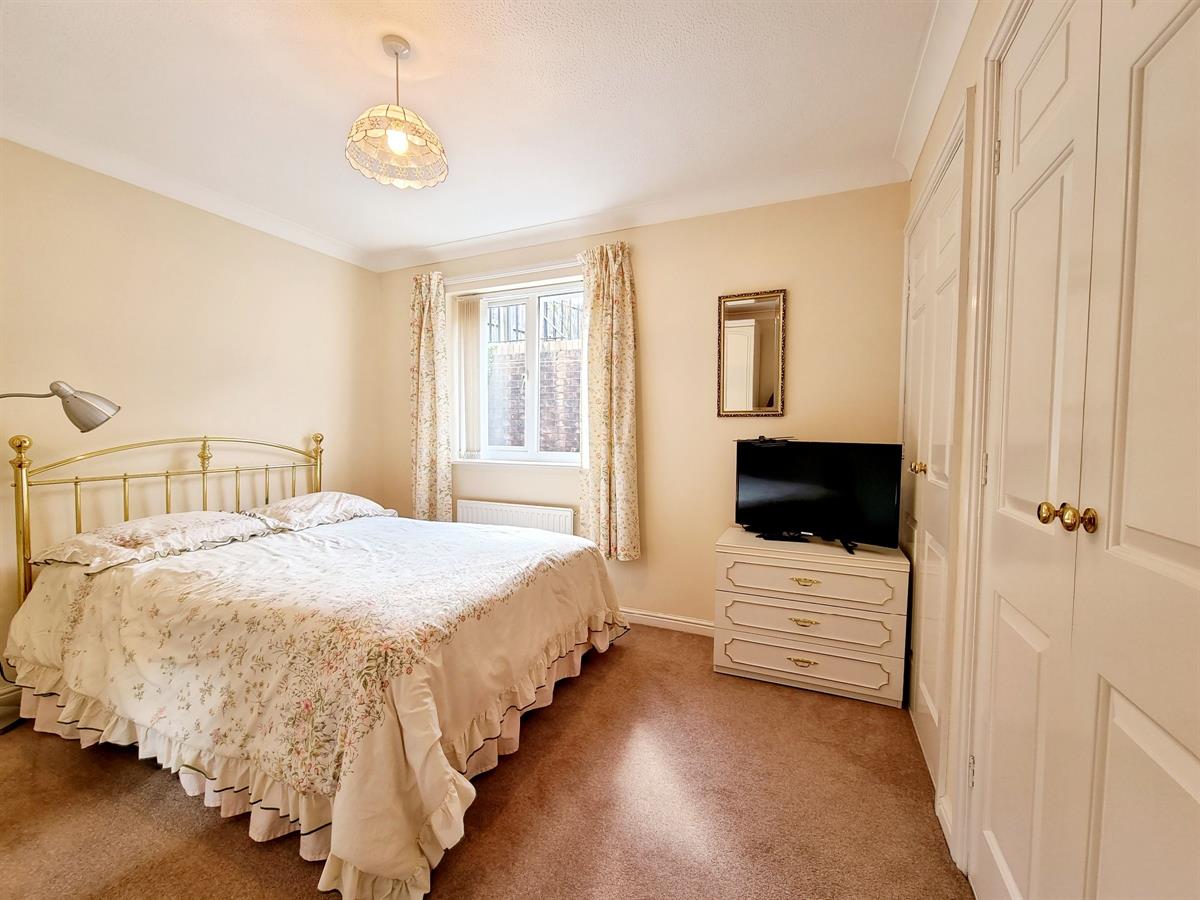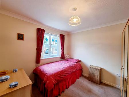 There are two bedrooms, with the master positioned at the rear of the home and benefiting from built-in wardrobe storage, while a family bathroom with a bath completes the layout.