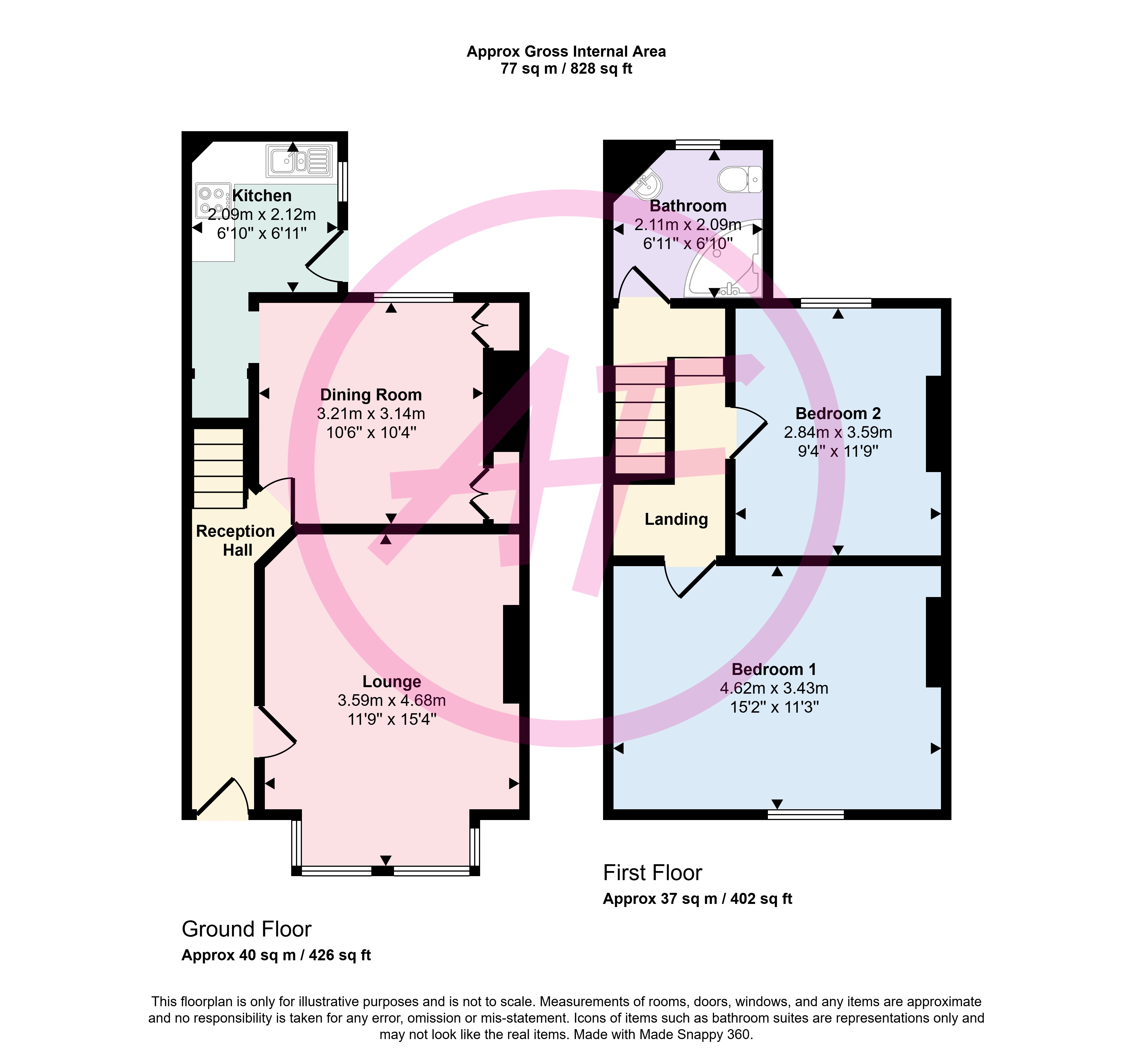 - Two reception rooms, modern kitchen