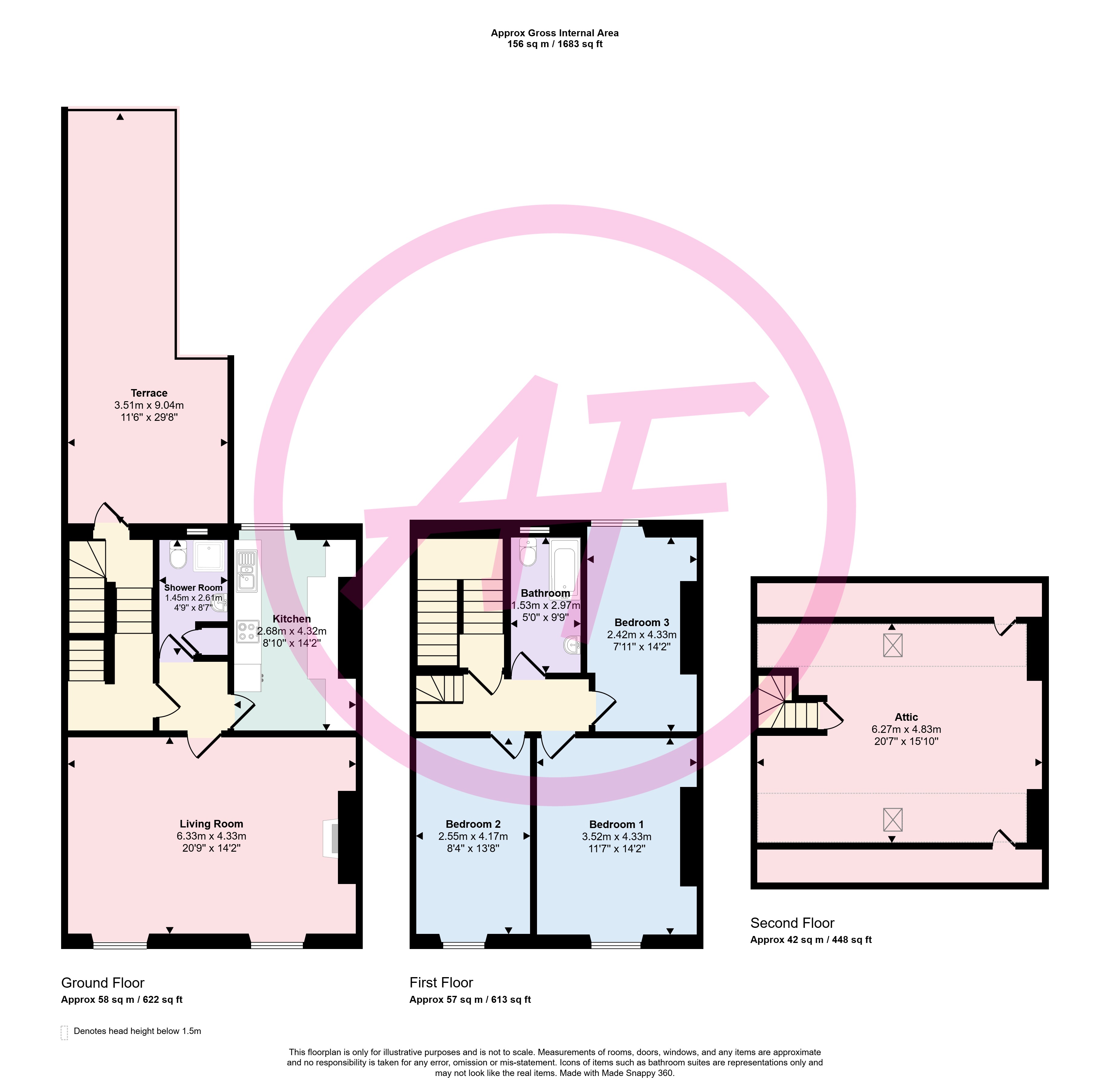 The property affords - lounge/diner, fitted kitchen, three double bedrooms, one with en suite, family bathroom and a large attic room/home office, plus the amazing terrace.