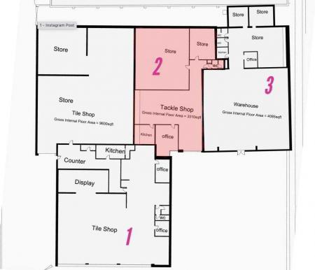 - Currently set up as shop with stores, office & WC