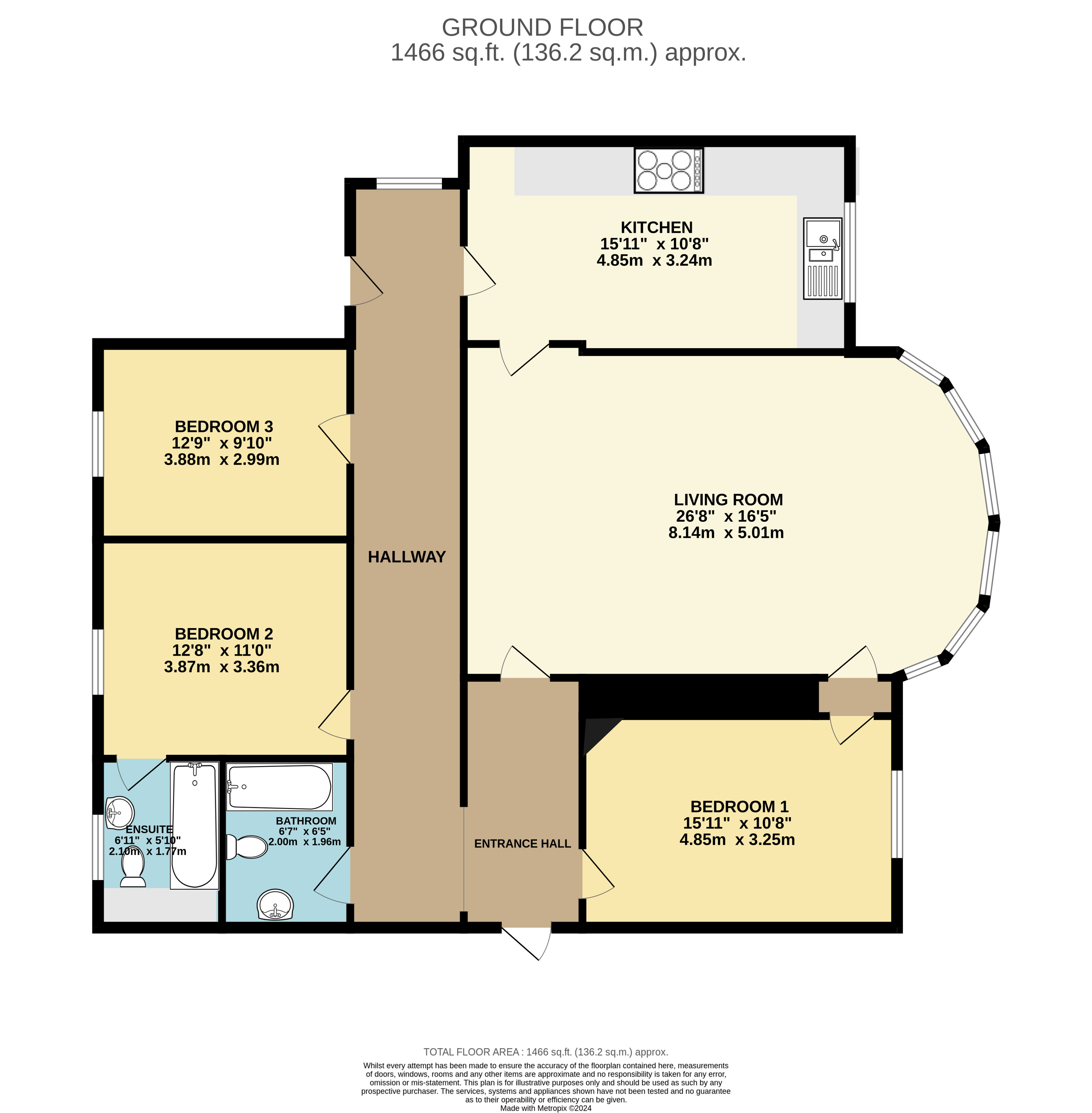 Bedroom 1 15'11" x 10'8" (4.85m x 3.25m).