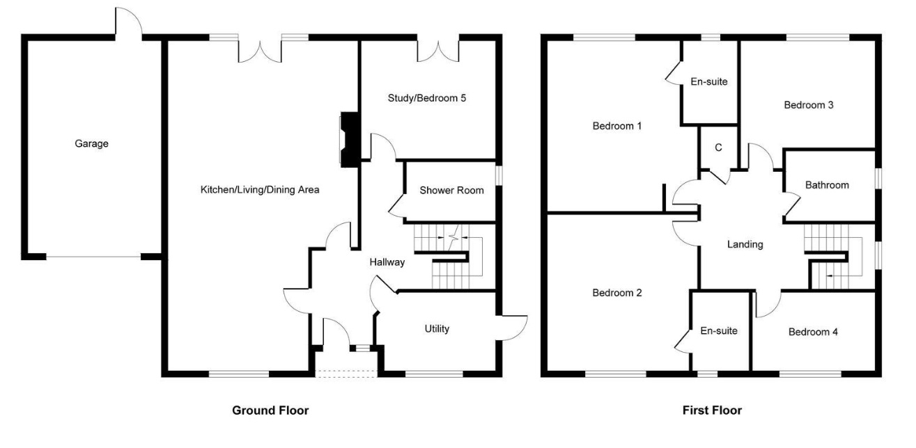 There are four first-floor bedrooms, two of which benefit from en-suite facilities, along with a family bathroom. The ground floor also features a flexible study or fifth bedroom with its own shower room, ideal for a home office, guest room, or for accommodating extended family. Underfloor heating via an air source heat pump enhances comfort throughout the ground floor, adding a touch of modern energy-efficient living.