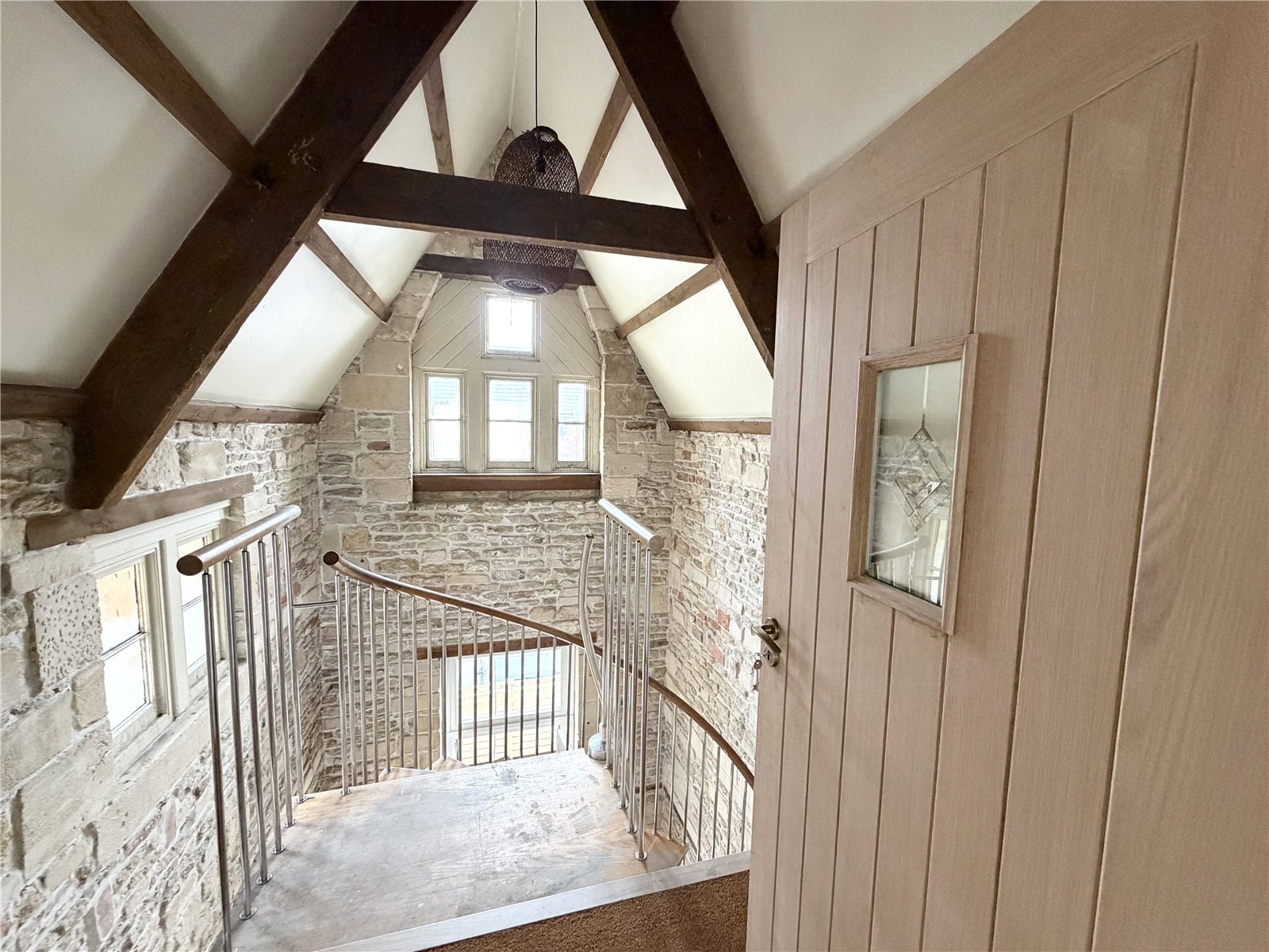 Upon entering the property through its own private entrance, which provides a useful area for storage, before ascending a striking spiral feature staircase that leads to the main accommodation.