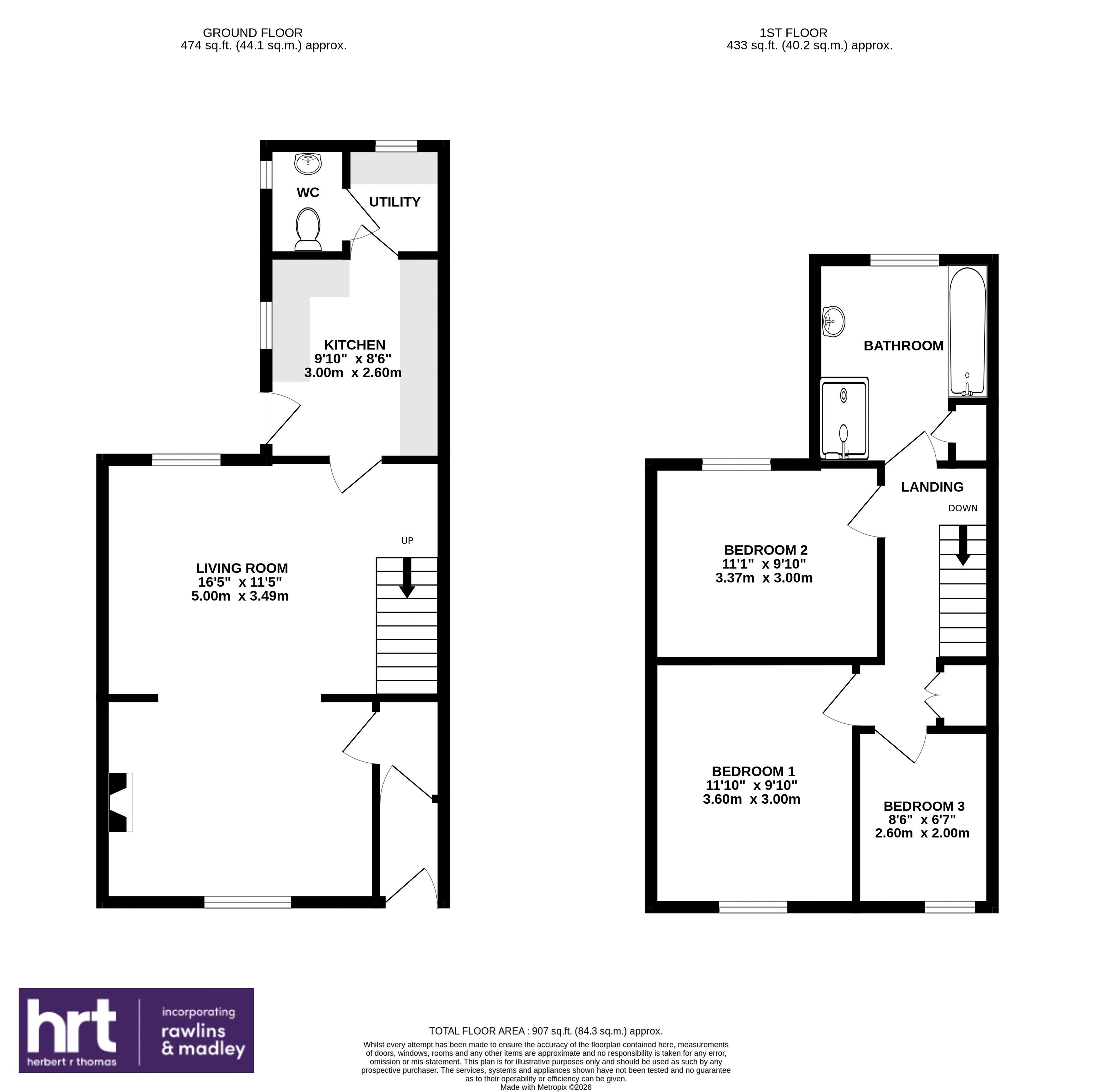 - Upstairs are three bedrooms and well-appointed modern bathroom.