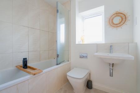 There are two parking spaces at the side of the property and a private, rear lawned garden. The quality of the construction and finish is clear from the moment you get inside with a well equipped kitchen complete with fitted 'Neff' appliances on the ground floor along with a generously proportioned living room with patio doors to the garden and ground floor cloakroom and wc. The whole of the ground floor is serviced by underfloor heating with thermostatic controls in each room. The first floor has a great en suite bedroom as well as two further bedrooms and an excellent family bathroom. The property is supplied with gas and has full double glazing throughout.