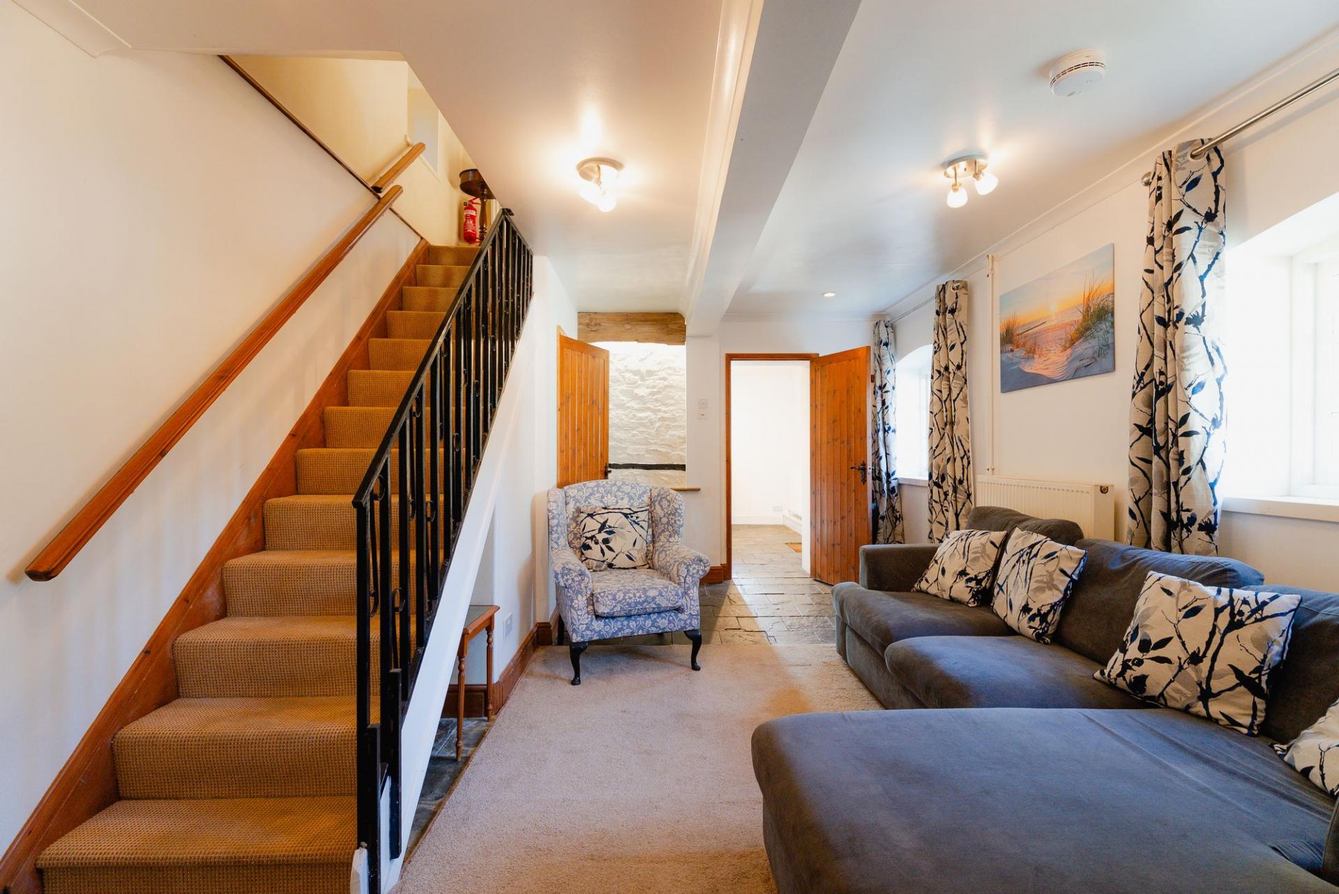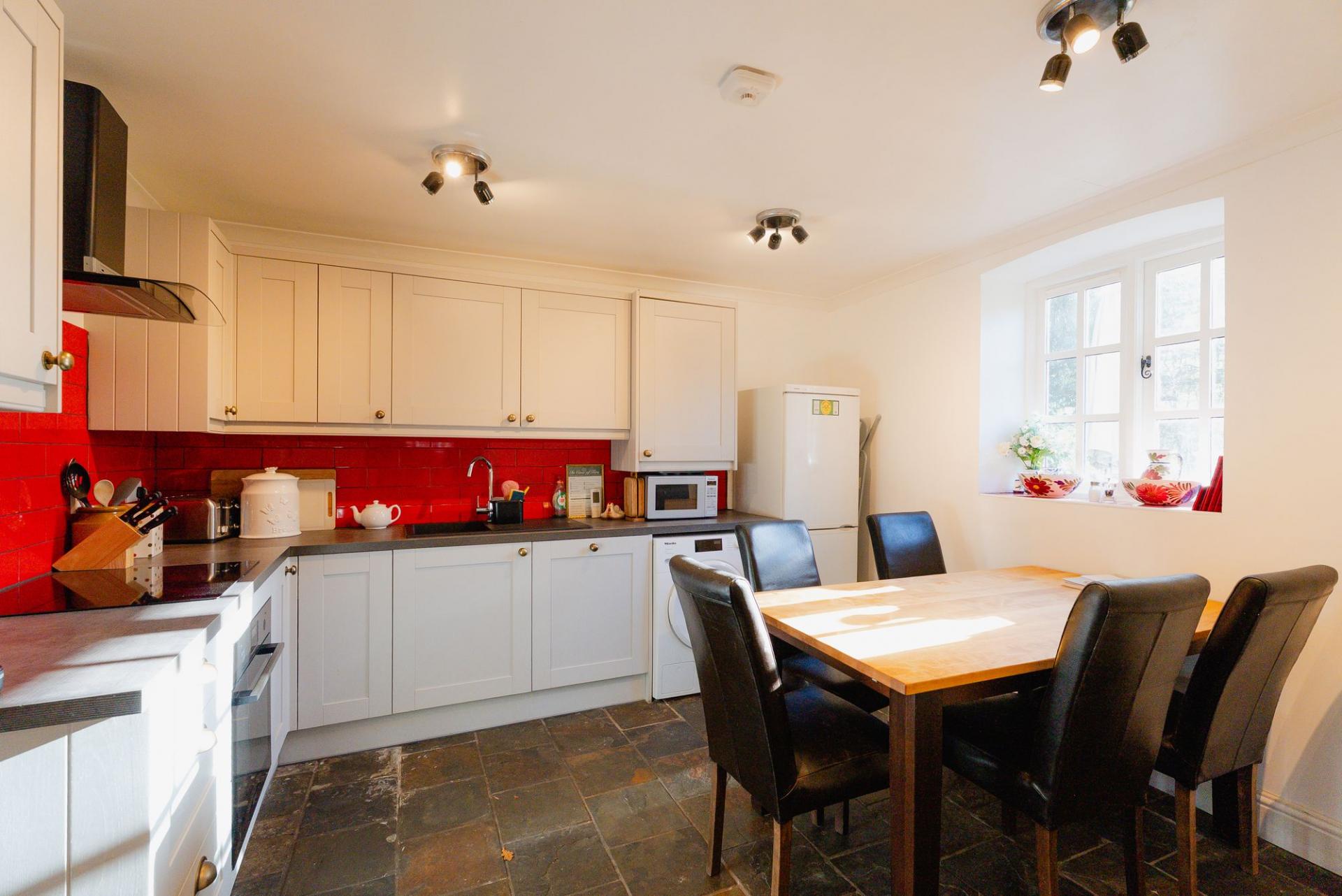 Millstream cottage is a character property on the outskirts of Lapford on the Lapford Mill site. The pretty semi-detached property sits on the large, attractive grounds of Lapford Mill. There is parking at the property for one car and further parking on site. The ground floor consists of a modern, well presented kitchen with stable door to outside area, with integrated cooker and hob with good quality kitchen units and flagstone flooring as well as welcoming living room with staircase to first floor. On the first floor there are two character double bedrooms as well as the attractive and modern family bathroom.