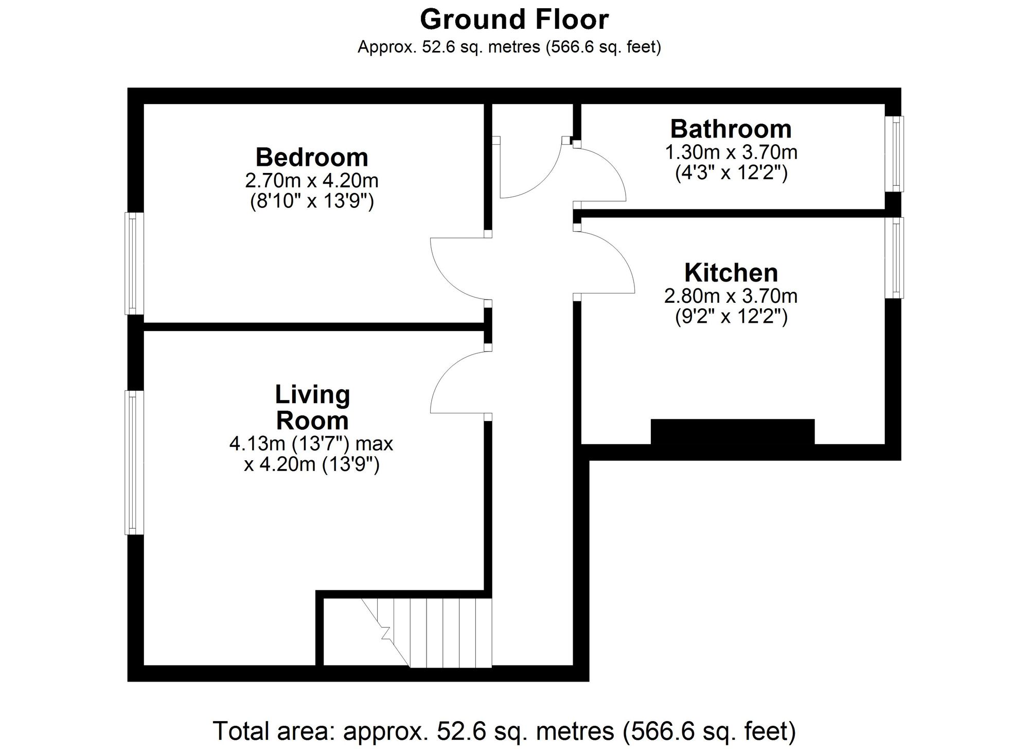 8b North Street is a centrally located, first floor, one bedroom flat with views over the Town Square with private access. The flat has been fully refurbished with new carpets, shower cubicle, cooker and some new windows being fitted as well as being redecorated. The rooms are large with high ceilings and the front rooms (living room and bedroom) have large, traditional windows. To the rear of the property there is the large kitchen and shower room.