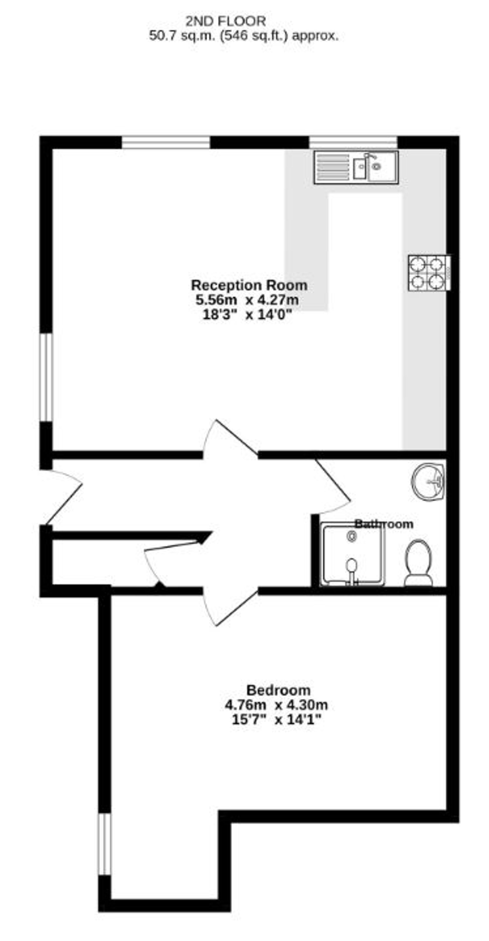 The property benefits from an open plan kitchen/living room, 3 piece bathroom and a large double bedroom, with built in storage.