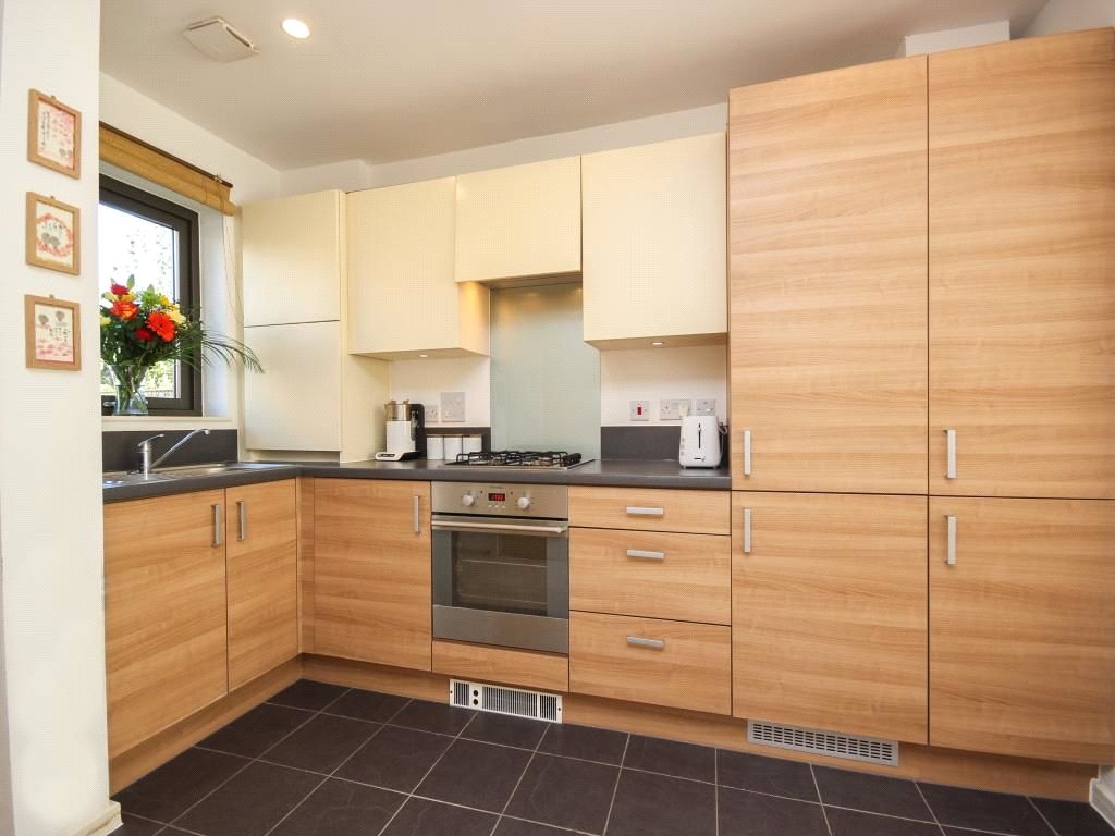 Comprises open plan lounge with stylish kitchen complete with integrated appliances, ground floor W.C, two double bedrooms, spacious first floor bathroom, private rear garden and drive way.
