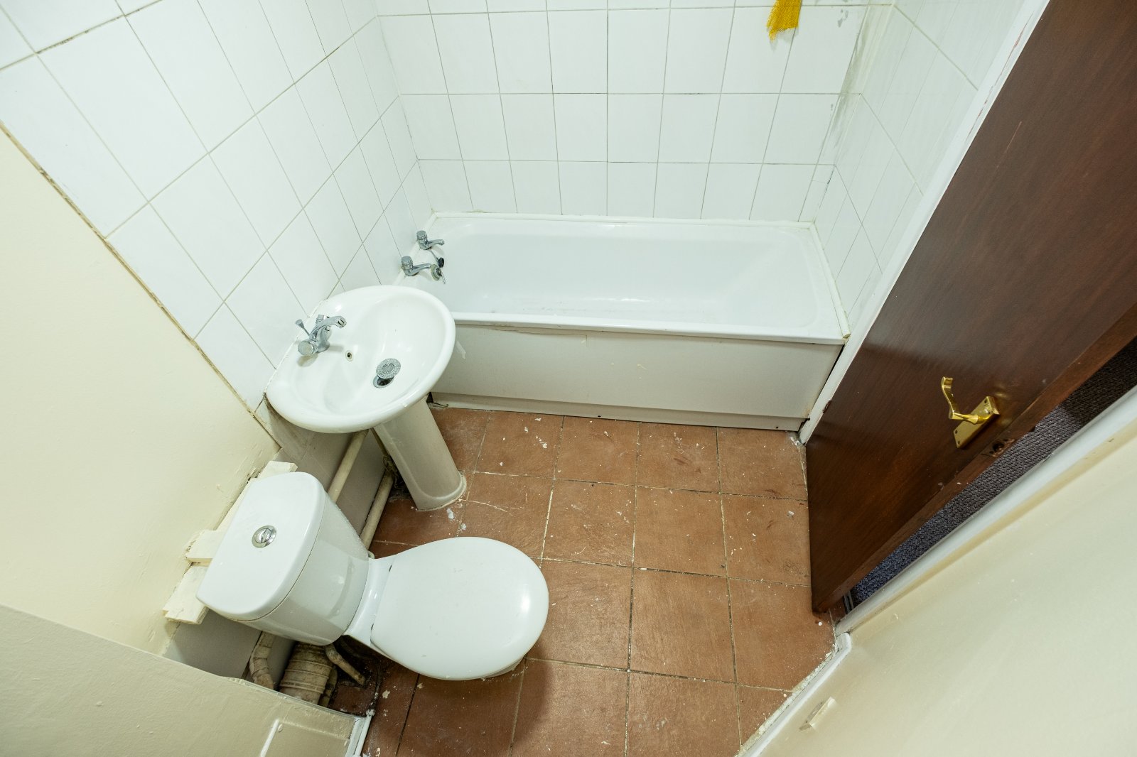 Shower Room 8'4" x 5'5" (2.54m x 1.65m). Tiled flooring. Low level WC. Wash hand basin with mixer taps. Bath. Part tiled walls. Extractor fan. Ceiling light.