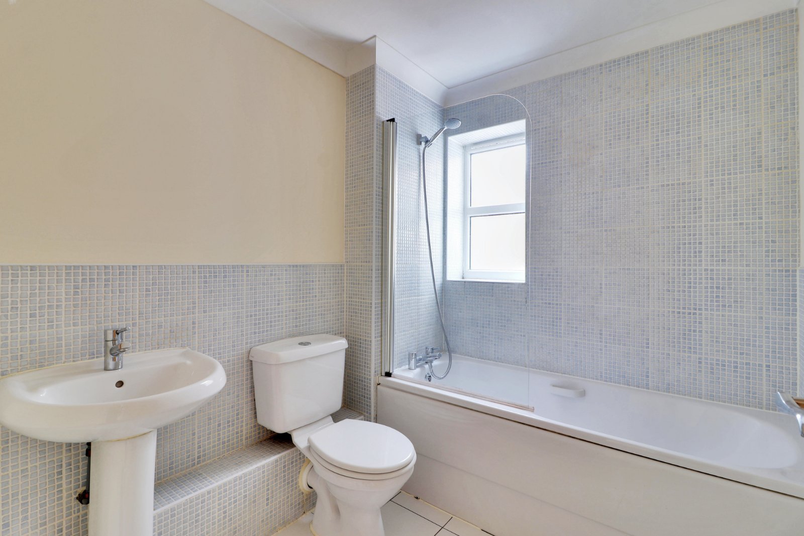 Bathroom 7'5" x 6'4" (2.26m x 1.93m). Frosted double glazed window to side. Tiled flooring. Plain coved ceiling. Extractor fan. Radiator. Panelled bath with shower screen and shower attachment with mixer tap. Pedestal wash hand basin. Low level W.C. Part tiled walls.