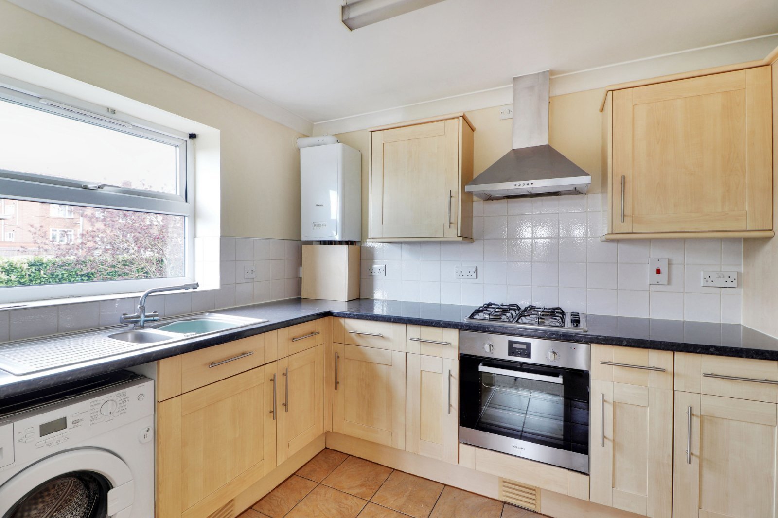 Kitchen 11'3" x 7'5" (3.43m x 2.26m). Double glazed window to rear. Tiled flooring. Plain coved ceiling. Smoke alarm. Radiator. Range of fitted wall and base units with fitted work surfaces. Built in Hot Point oven and stainless steel Stoves gas hob with stainless steel filter hood over. Integrated fridge/freezer. Beko washing machine. Stainless steel sink unit with mixer tap. Local tiling to walls. Wall mounted Glow Worm gas boiler.