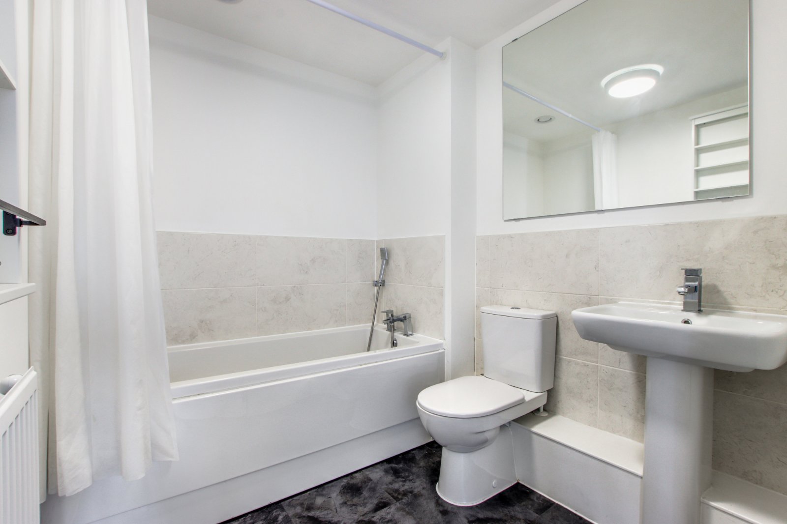 Bathroom Vinyl flooring. Plain ceiling. Extractor fan. Radiator. Panelled bath with mixer tap, shower attachment and curtain. Close coupled W.C. Pedestal wash hand basin. Shaver point. Local tiling to walls.