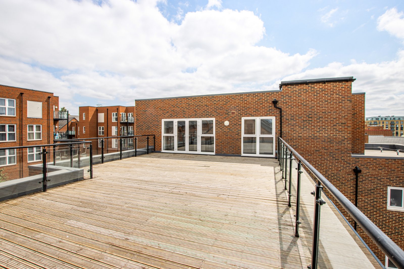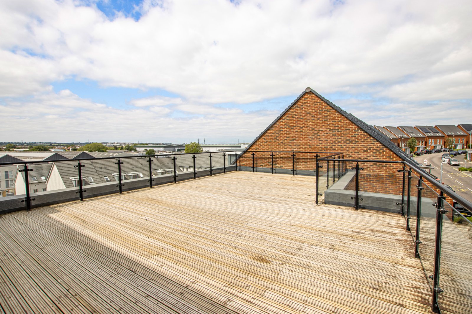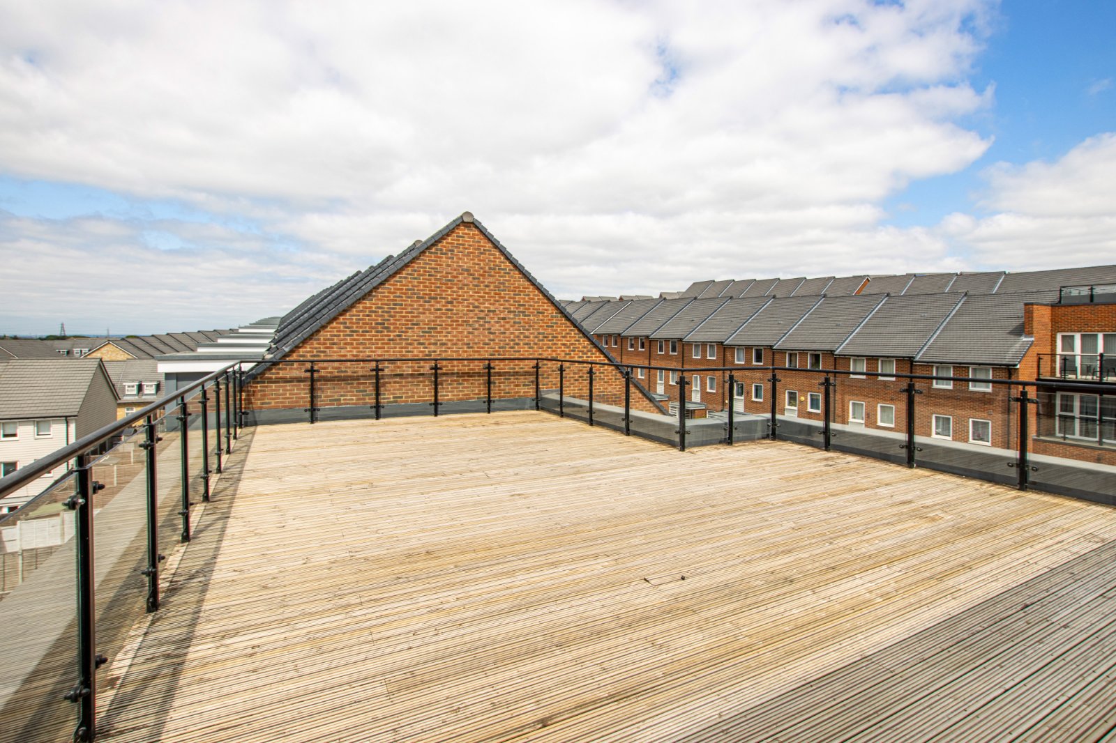 Roof Terrace 34'10" x 23'10" (10.62m x 7.26m). Decked with glass panels with handrail. External power point. External light.