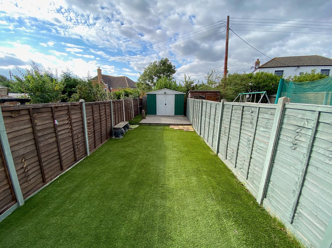 Outside there is an attractive low maintenance rear garden featuring artificial grass and a large storage shed.