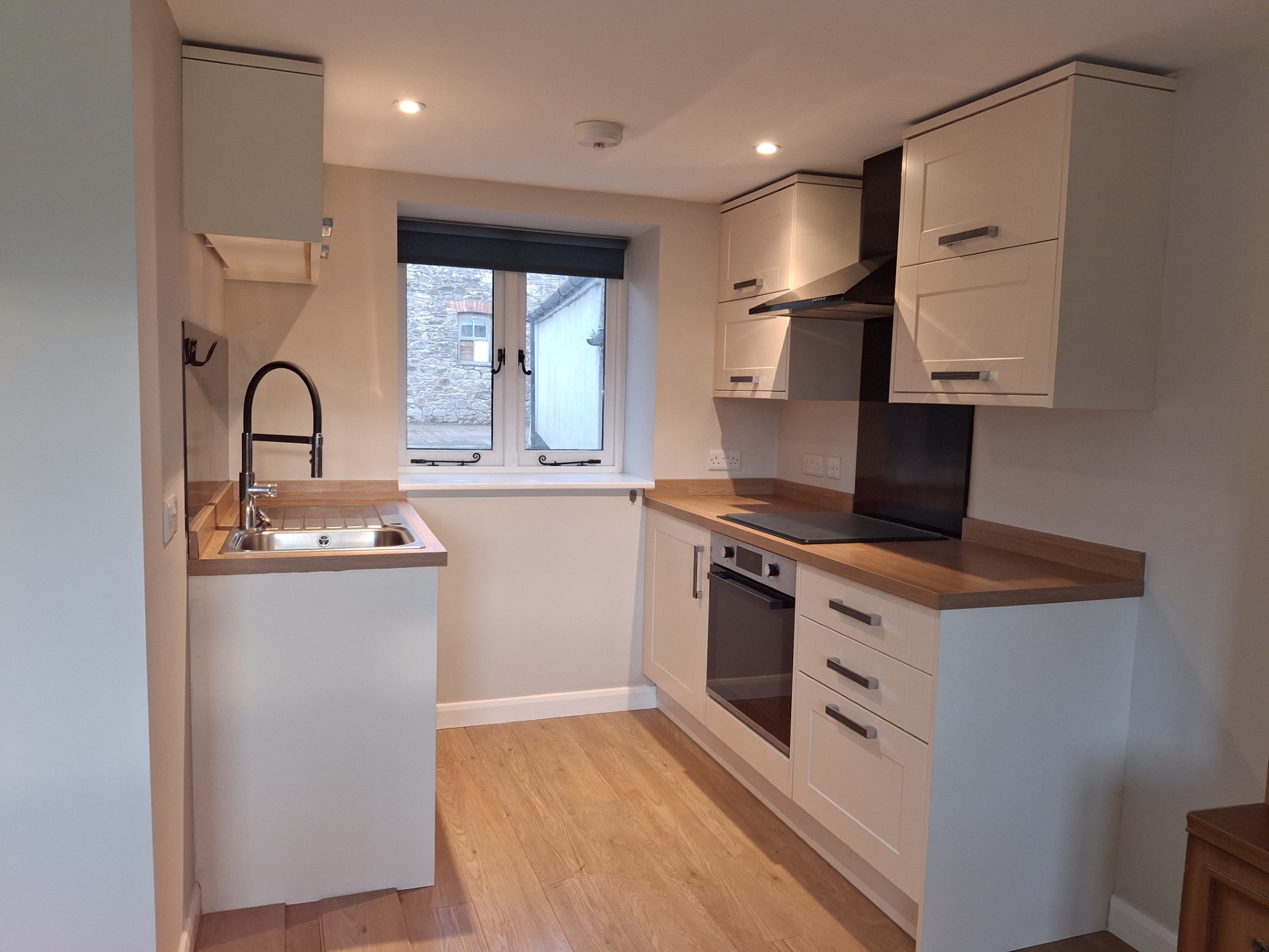 Head in to the open plan Living space 15' 7" x 9' 5" (4.75m x 2.87m) which has windows to the front and rear. To one side is a fitted kitchen 7' 2" x 6' 2" (2.18m x 1.88m) with electric cooker and hob with extractor over. There is space for an upright fridge/freezer. There is also a WC to the ground floor and door leading out from the rear lobby to the farm yard.