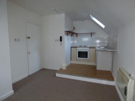PROPERTY DESCRIPTION The property is accessed via a communal entrance and a staircase leading to the first floor. Once inside the property there is access to the L shaped living area/bedroom, fitted raised kitchen and dining space. The kitchen is fitted with a range of units, stainless steel sink, built in electric oven and hob as well as space and plumbing for a washing machine. The living space/bedroom is spacious with neutral décor and carpet. There are electric panel heaters throughout and double glazing. A modern shower room with electric shower, toilet and basin can also be found off the entrance hallway.