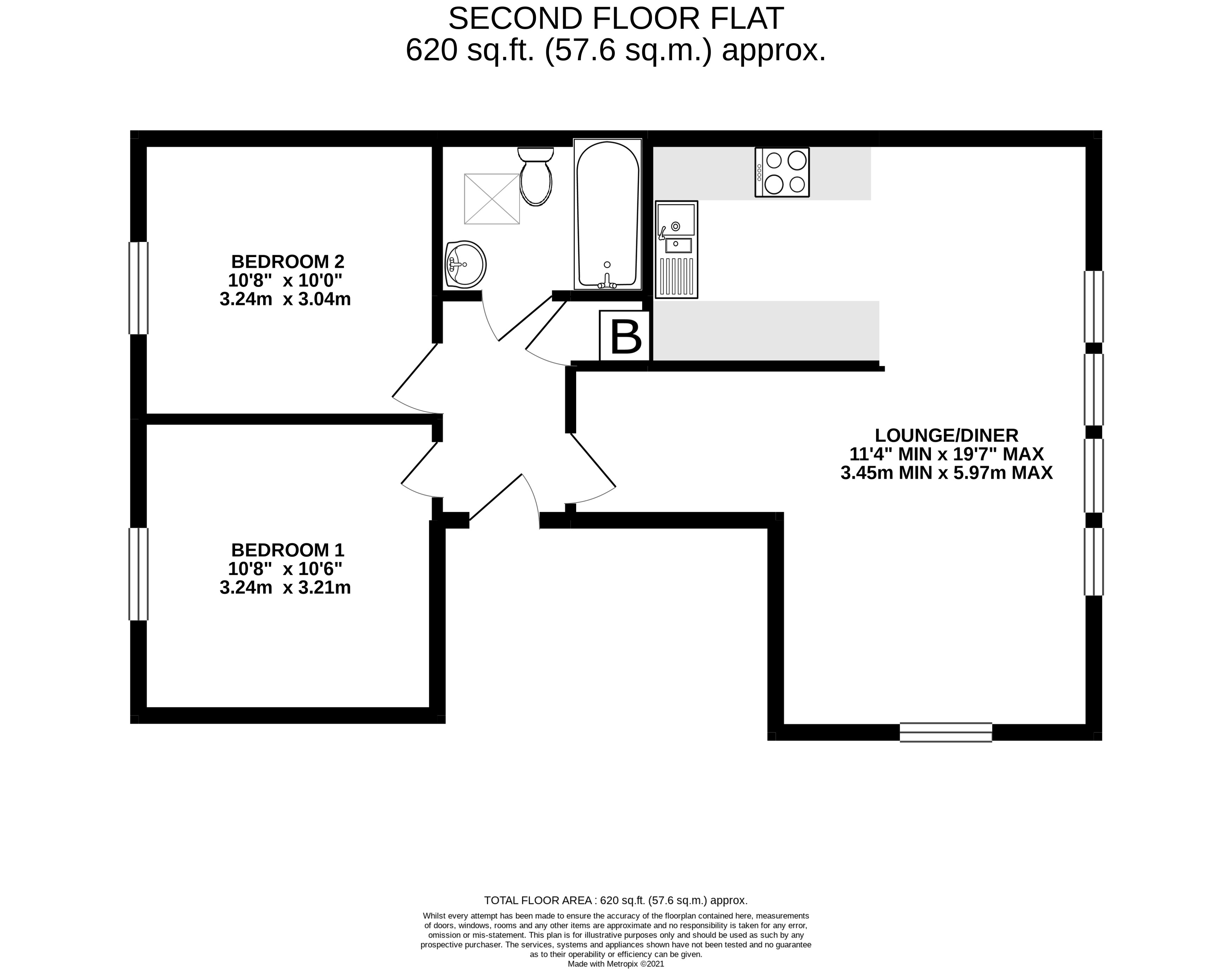 - 2 bedroom second floor apartment