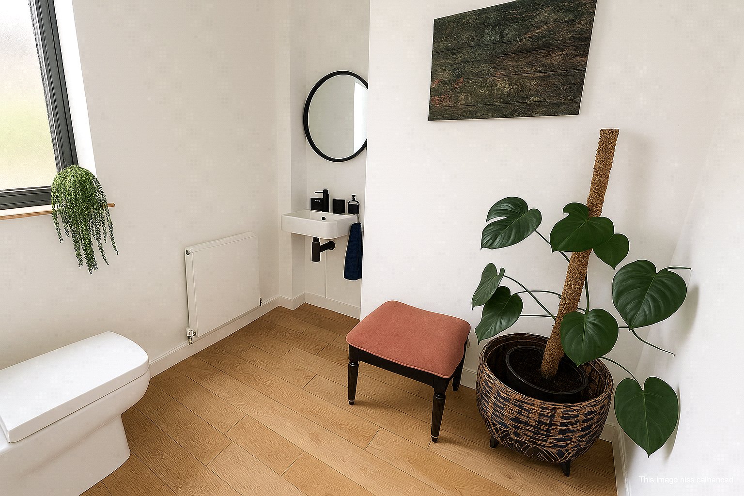 used as a walk-in wardrobe but would be ideal as a study. The bathroom is fitted with a bath and