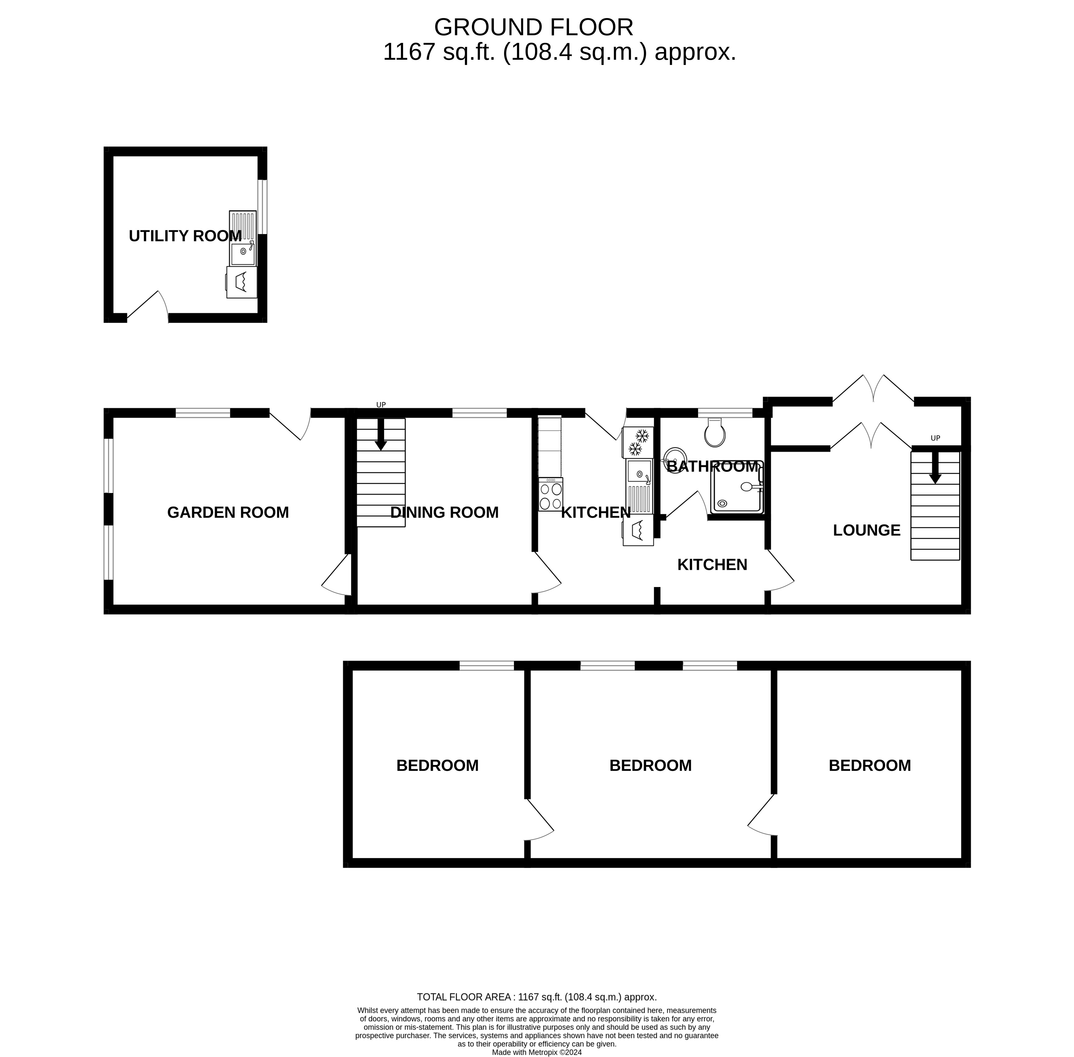 Outside is a useful utility, shared courtyard and enclosed grass garden.
