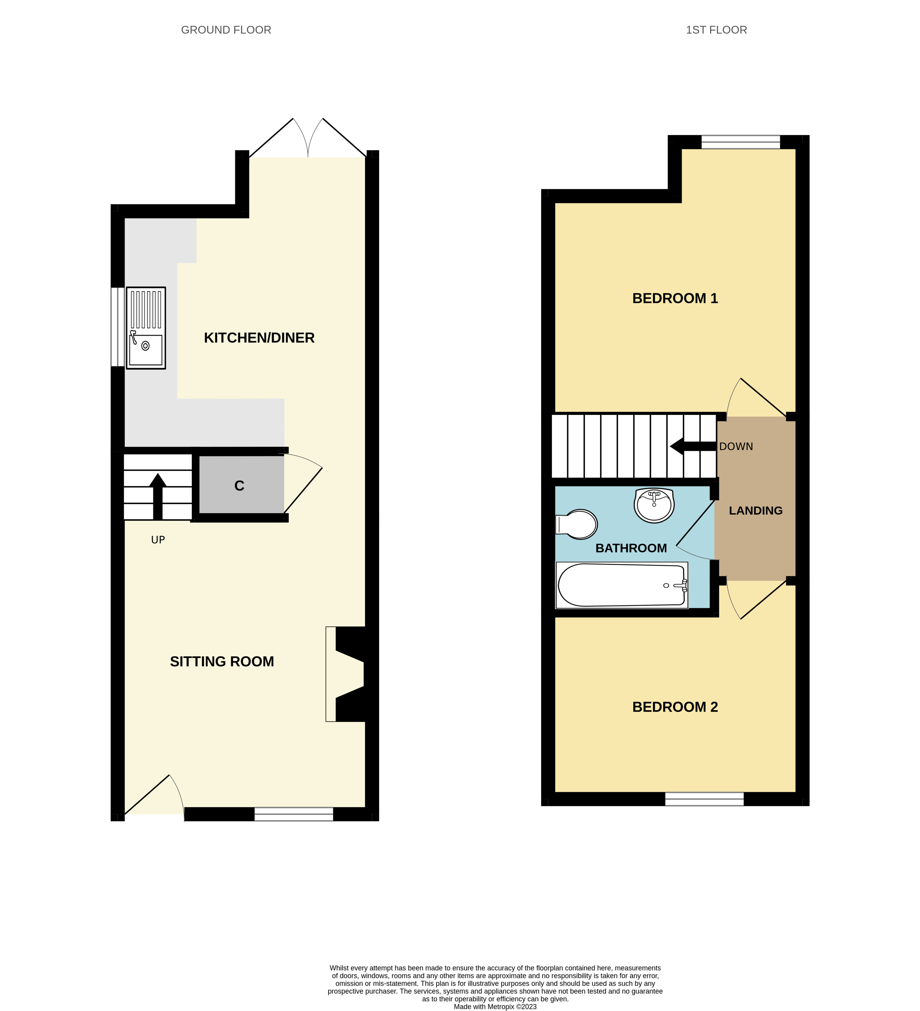 Step through the front door into a cosy, lounge featuring a charming fireplace and ample space for your furnishings. Stairs lead to the first floor, while the Kitchen and dining area sits just behind, offering direct access to the small gravelled courtyard.