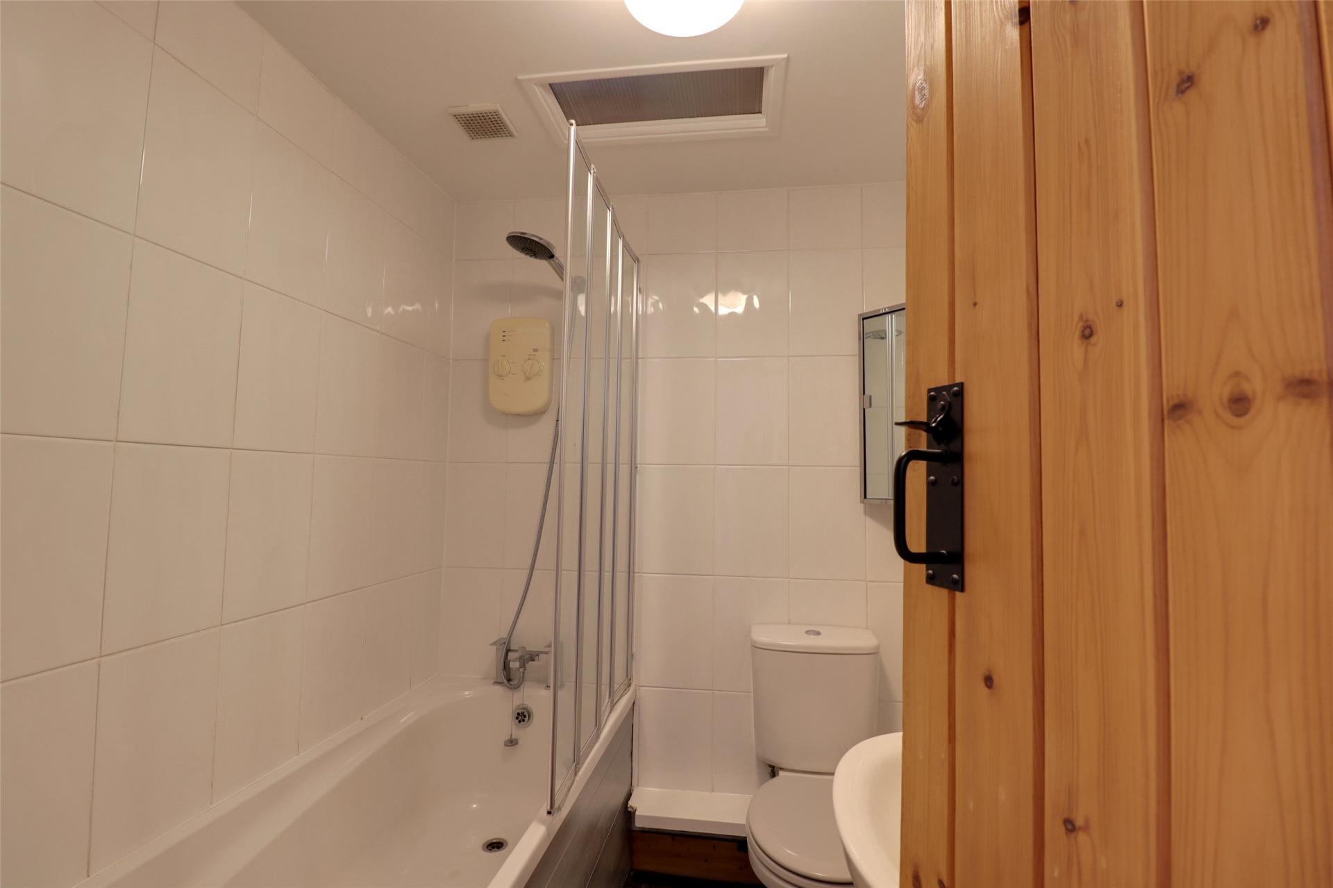 Upstairs, you'll find two double bedrooms, with the larger positioned at the rear of the property. The family bathroom includes a WC, wash basin, and a bath with an electric shower overhead.