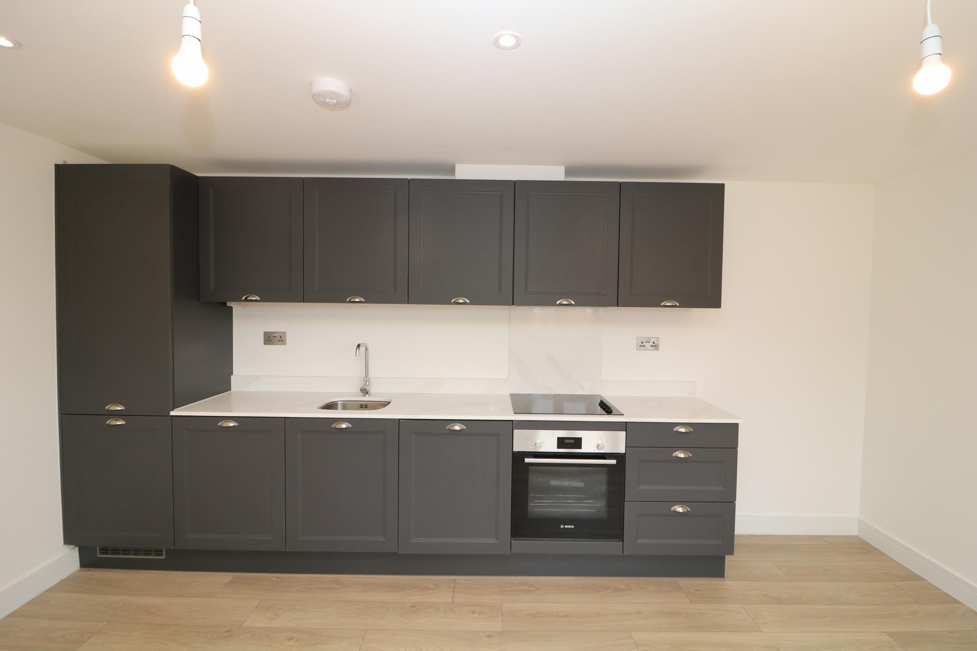 The property features contemporary grey fitted kitchen with hob, oven, washer/drier, fridge/freezer and dishwasher. Open plan living room, fabulous bathroom with shower and bath, good size bright and spacious bedroom.