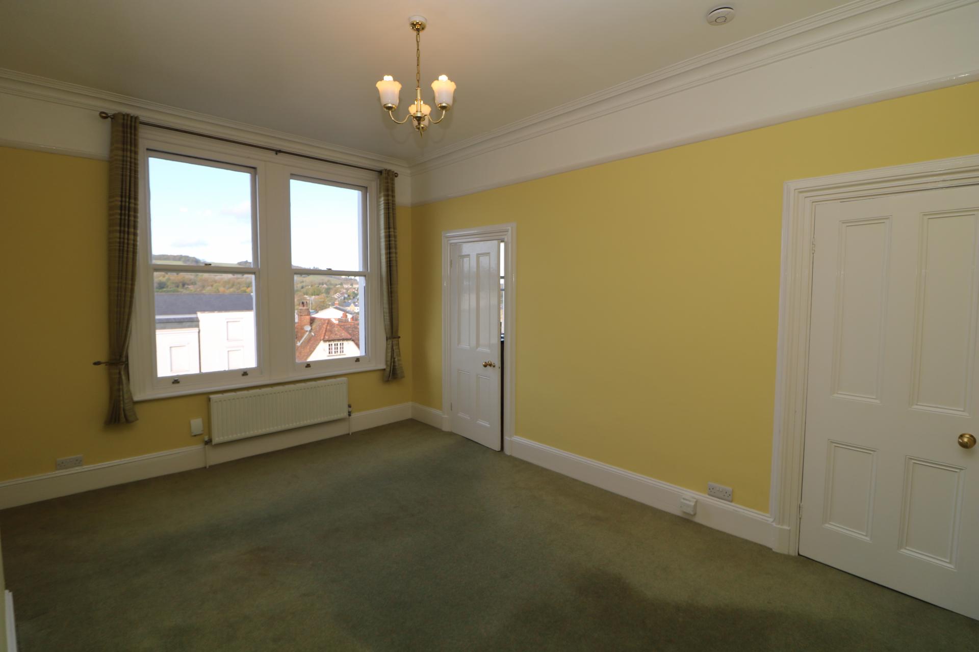 **SPACIOUS CHARACTER APARTMENT IN A FANTASTIC ELEVATED POSITION** Located in the heart of Dorking. The property is available immediately and comprises of one double bedroom, modern bathroom with shower, sitting room with far reaching views and modern kitchen with appliances. The property offers spacious accommodation with high ceilings throughout.